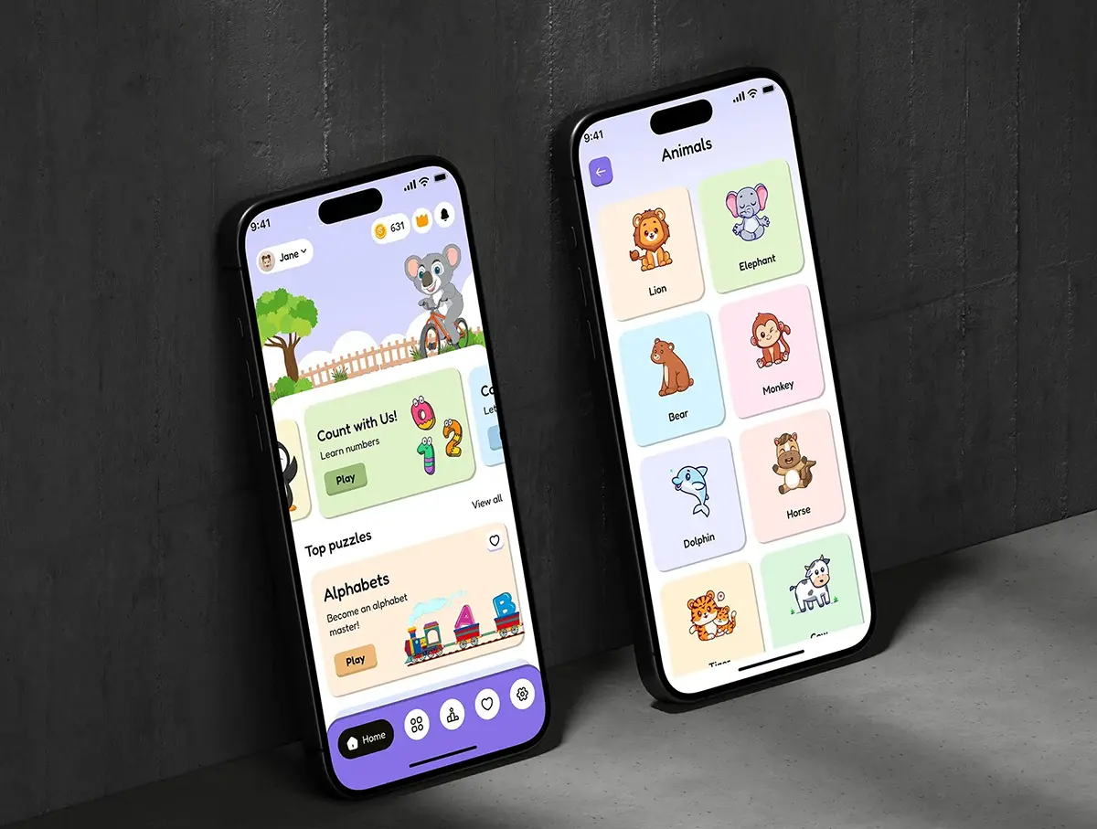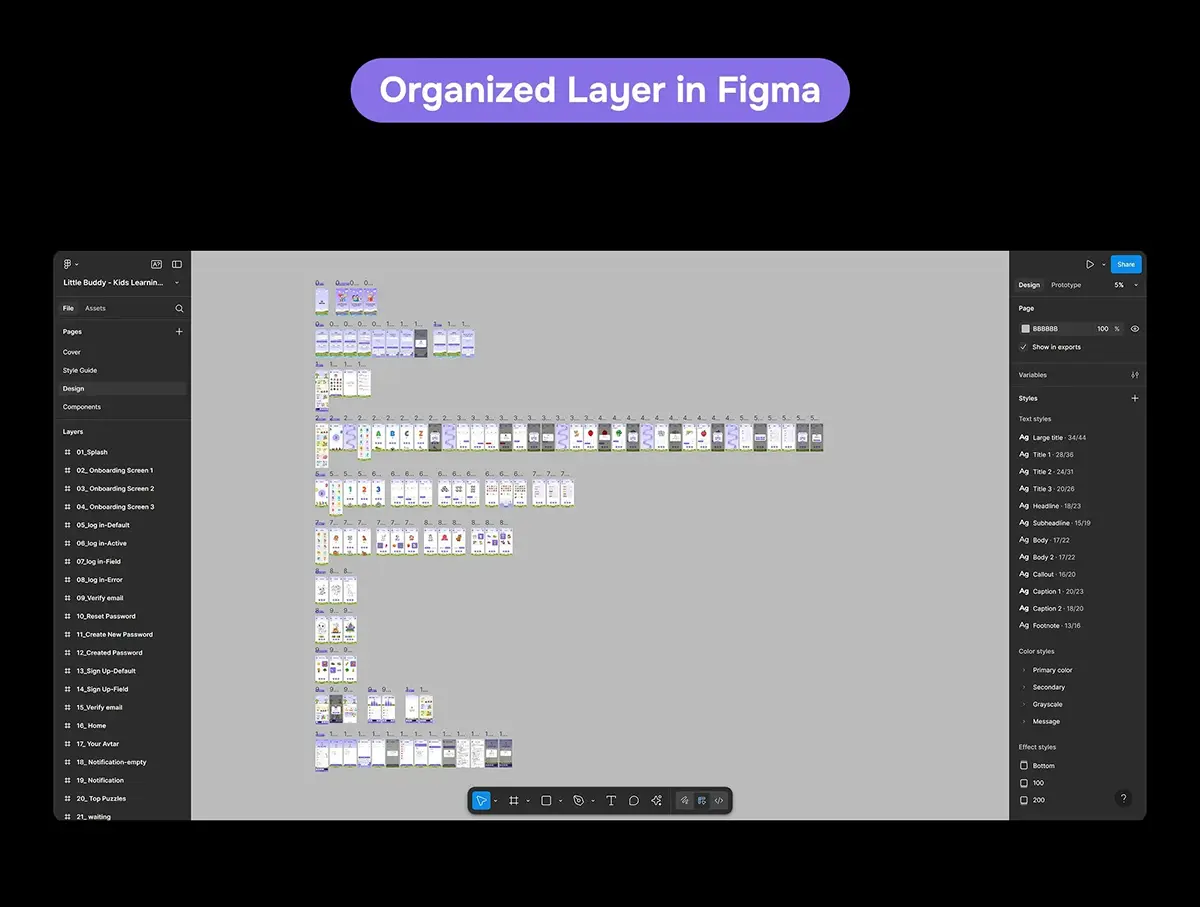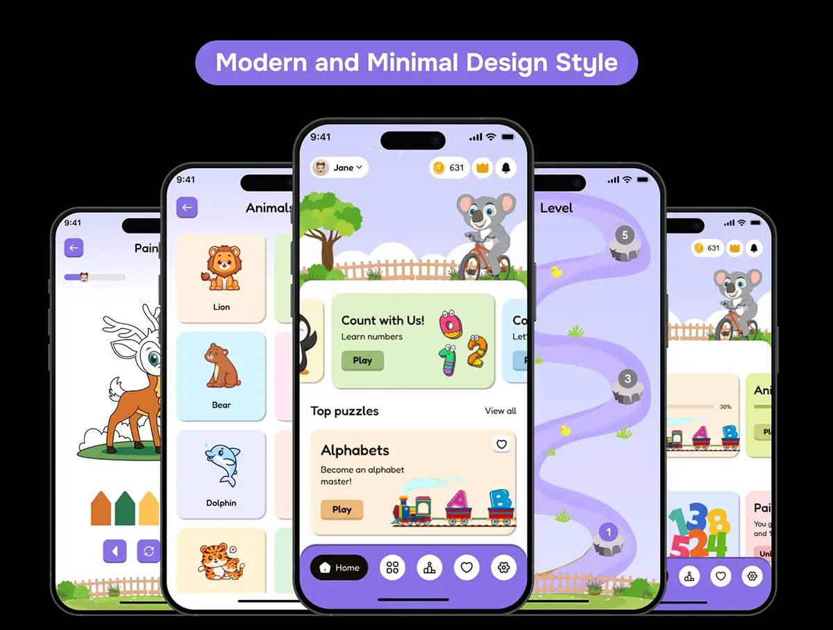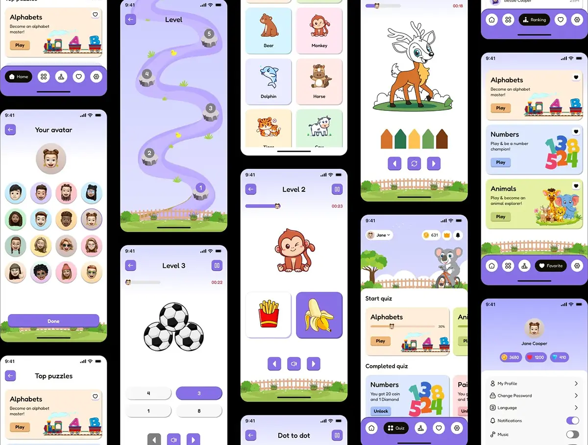 100+屏在线游戏化语言学习教育课堂app设计用户界面ui套件模板 Little Buddy – Kids Learning App UI Kit