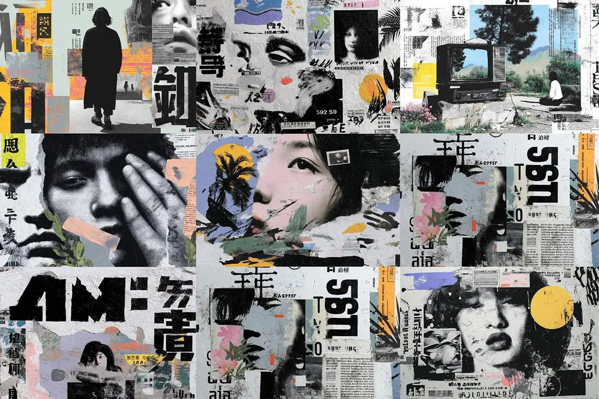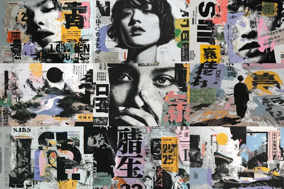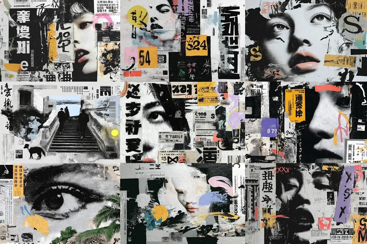 73款日系复古潮流日本美学数字抽象艺术混合拼贴背景底纹图片素材 70 Aesthetic Japanese Collage Backgrounds