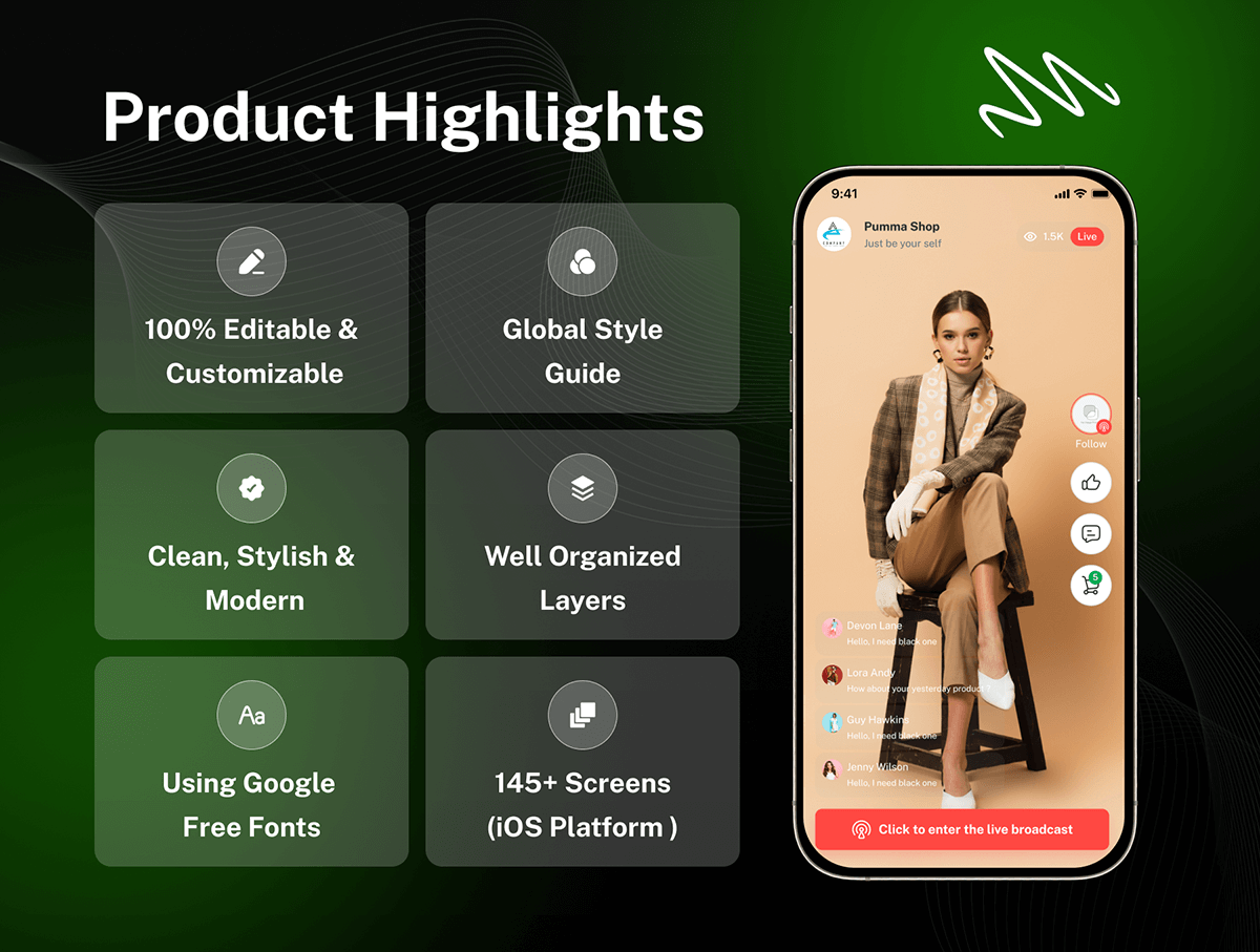 带直播功能的电子商务移动应用程序Figma UI套件 Shoply – eCommerce Mobile App Figma UI Kits