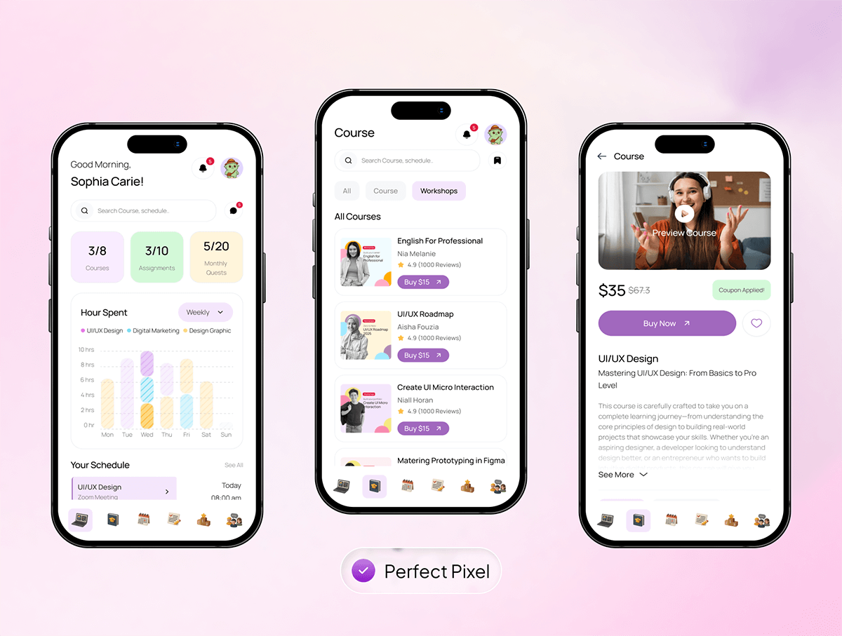 100+屏创意有趣游戏风格学习教育课程任务仪表盘UI界面设计Figma模板套件 PhiLearn – Gamified Learning Dashboard UI KIT