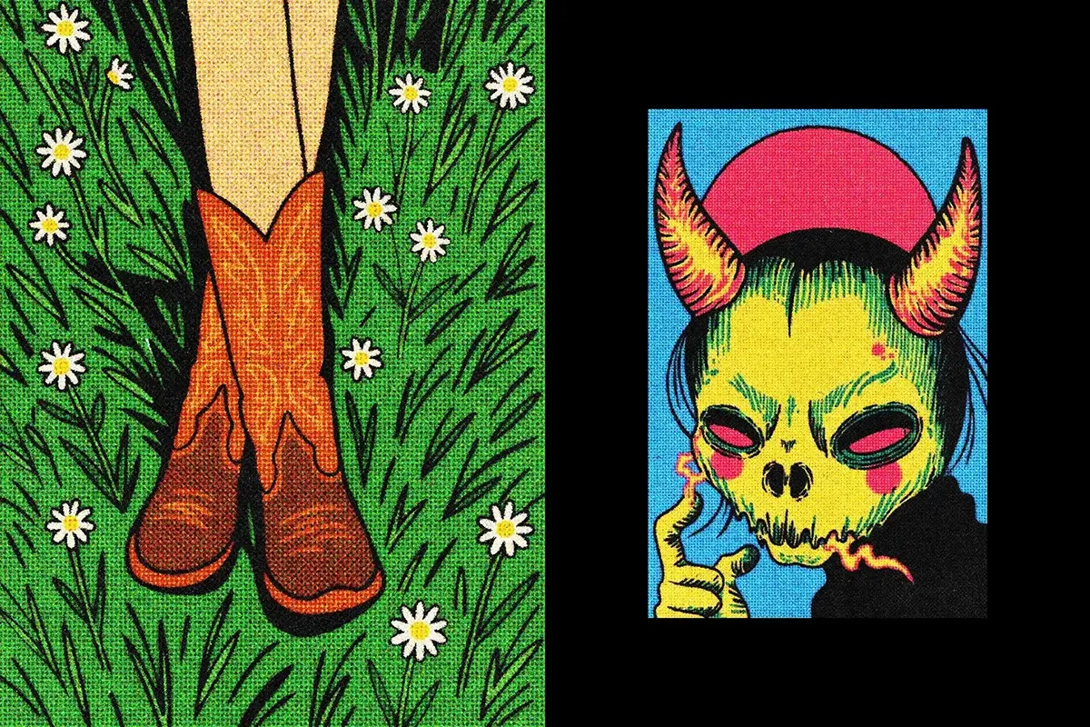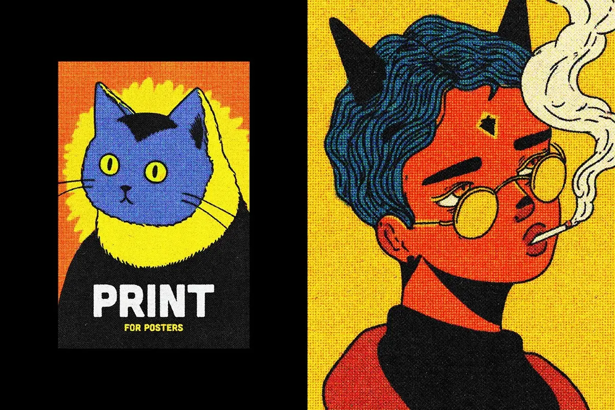 潮流复古时尚半调肌理点阵打印做旧漫画插图后期ps特效样机模板 Halftone Print Style Effect