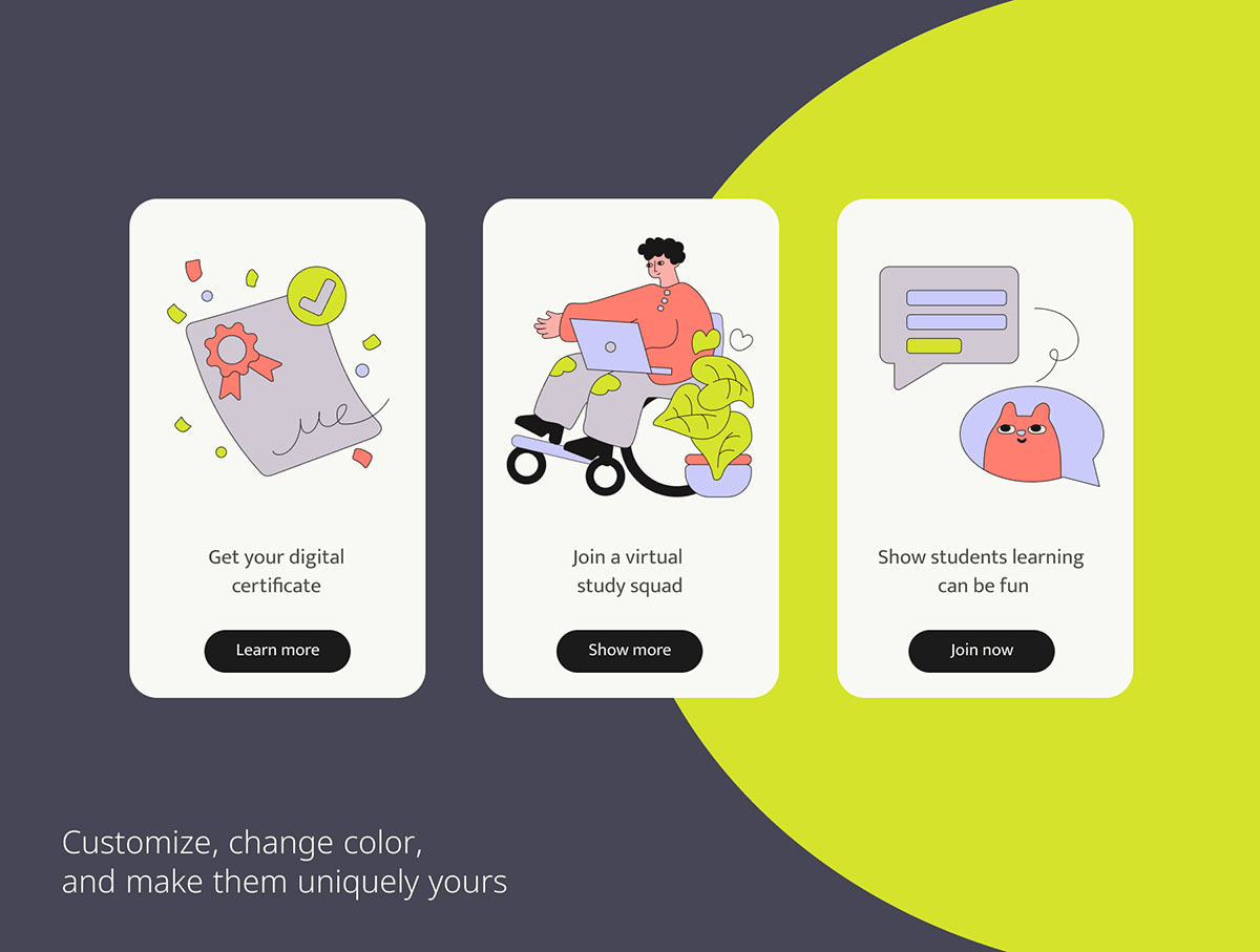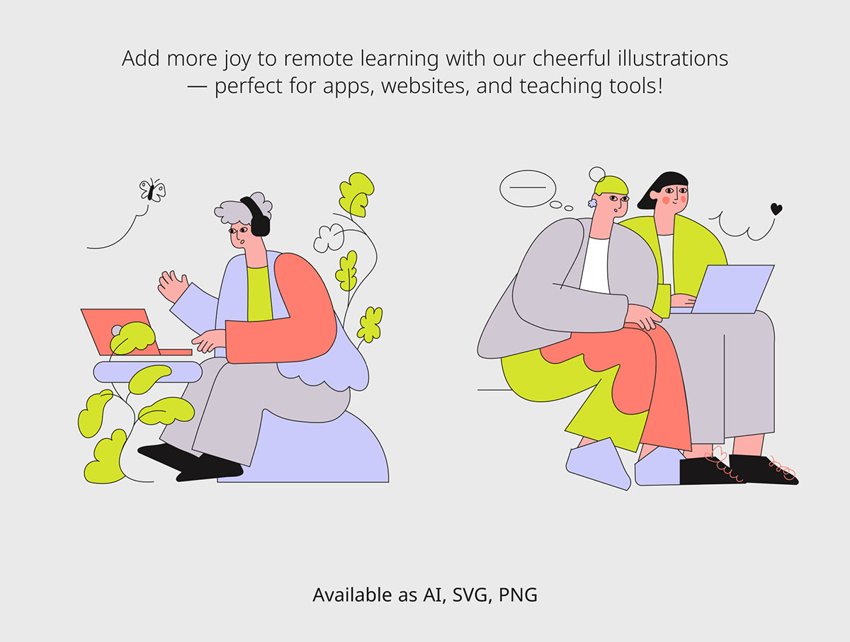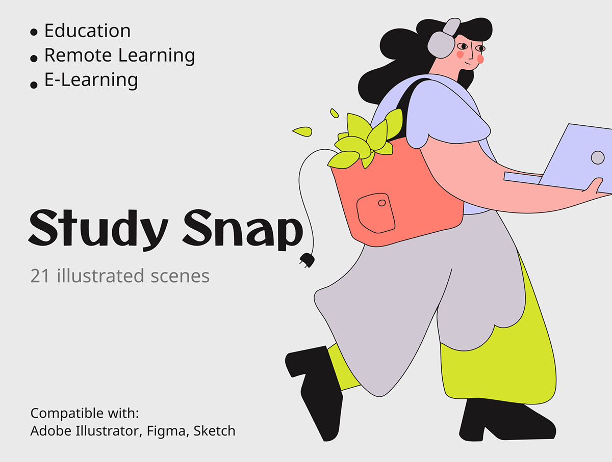 21款扁平化在线课堂远程学习课程教育手绘人物插图插画ai矢量素材 Study Snap