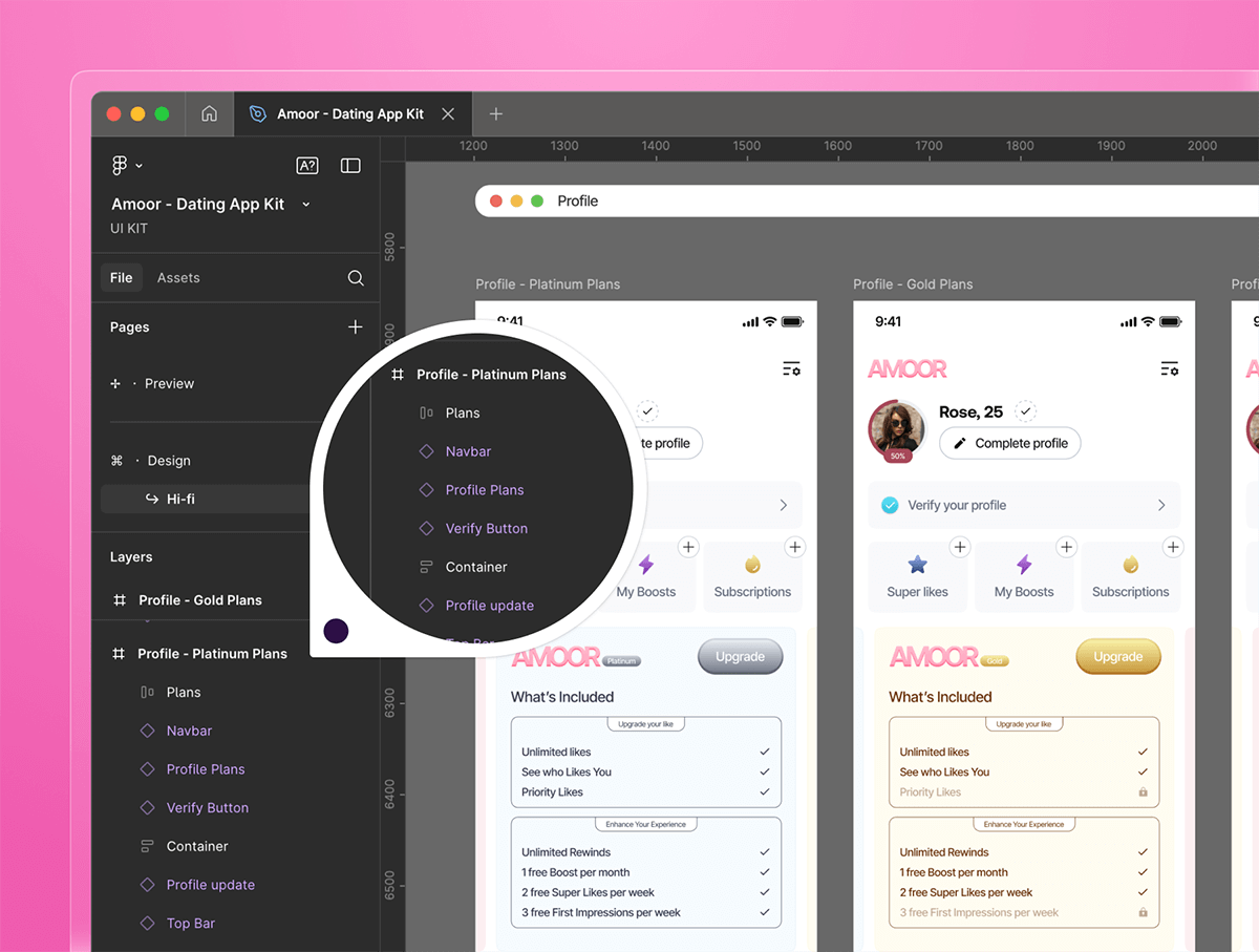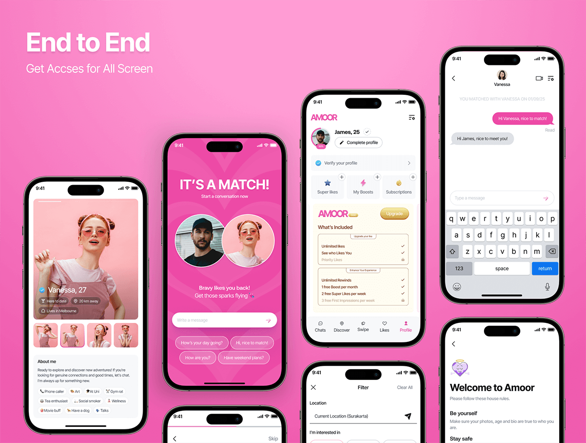 50屏约会应用程序移动社交产品app界面UI设计 Amoor – Dating App Kit