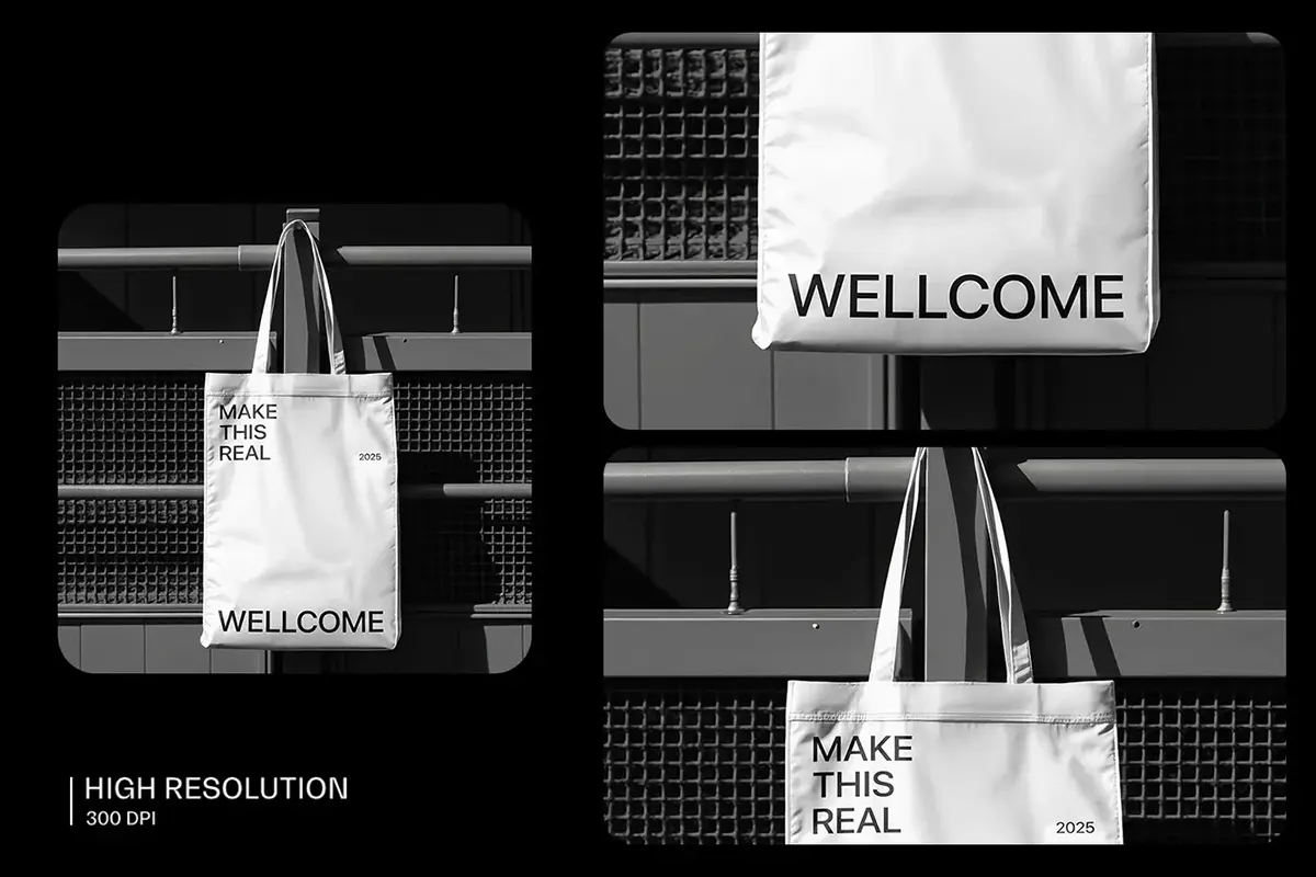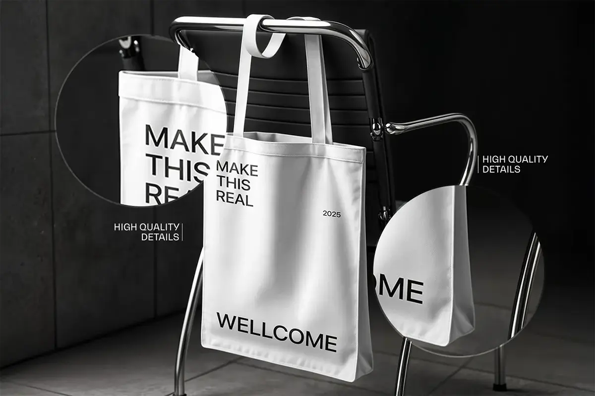 6款帆布袋手提袋拎袋模型品牌logo标识印花图案设计贴图ps样机素材 High-Quality Canvas Tote Bag Mockup