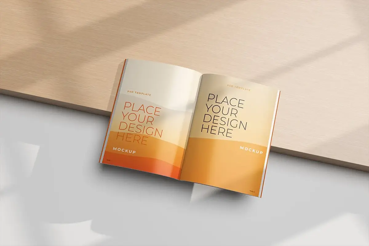3款自然光影杂志模型封面封底内页布局展示设计贴图ps样机素材模板 Book Mockup