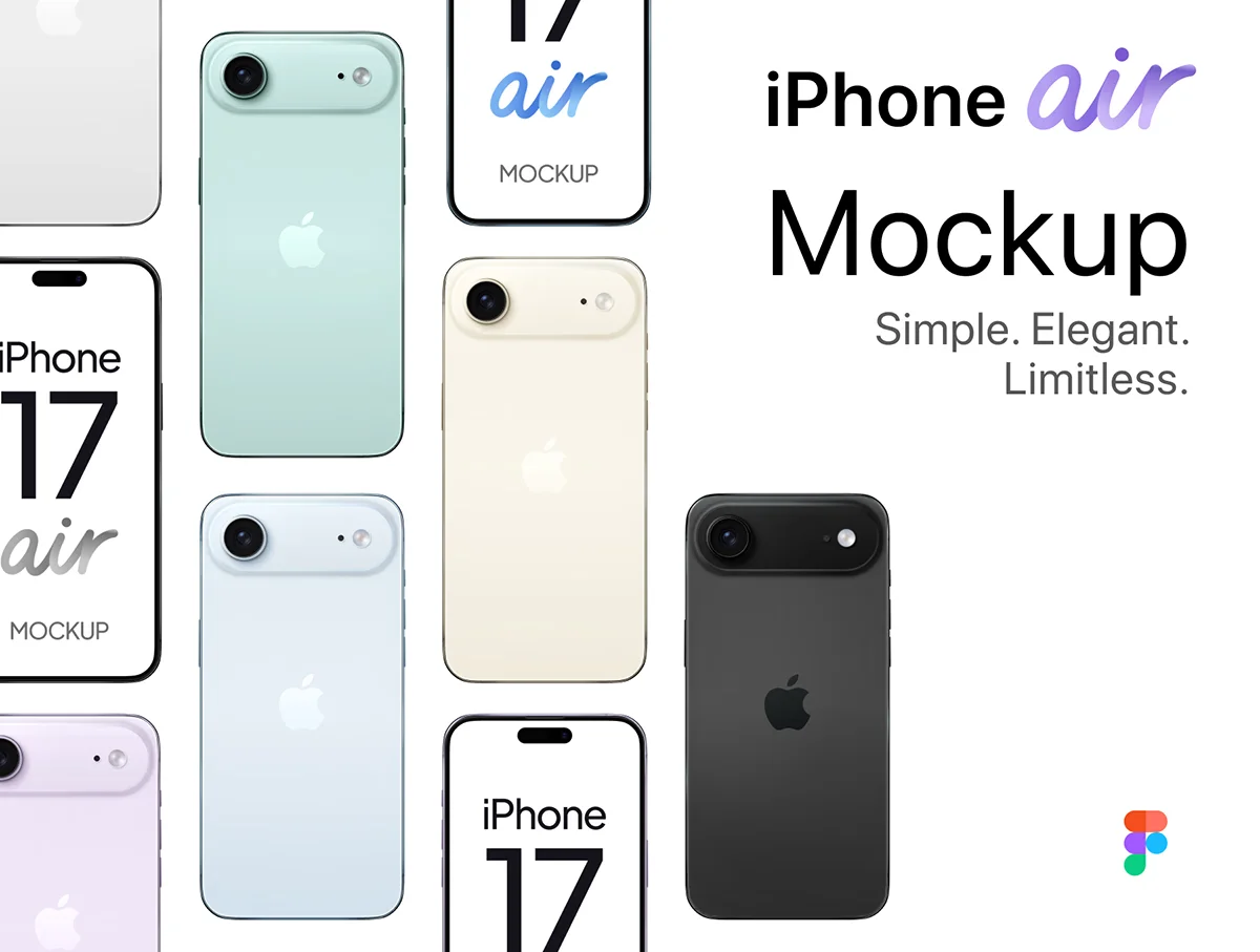 iPhone17 air 移动端手机App ui界面设计作品展示效果图fig矢量素材 iPhone 17 Air Mockup Vector Figma