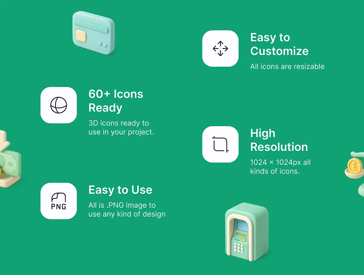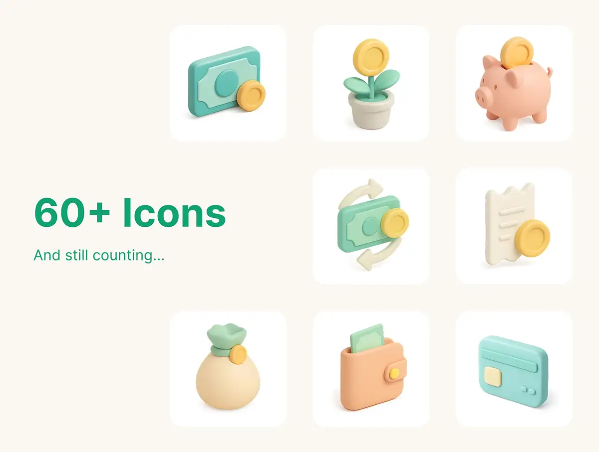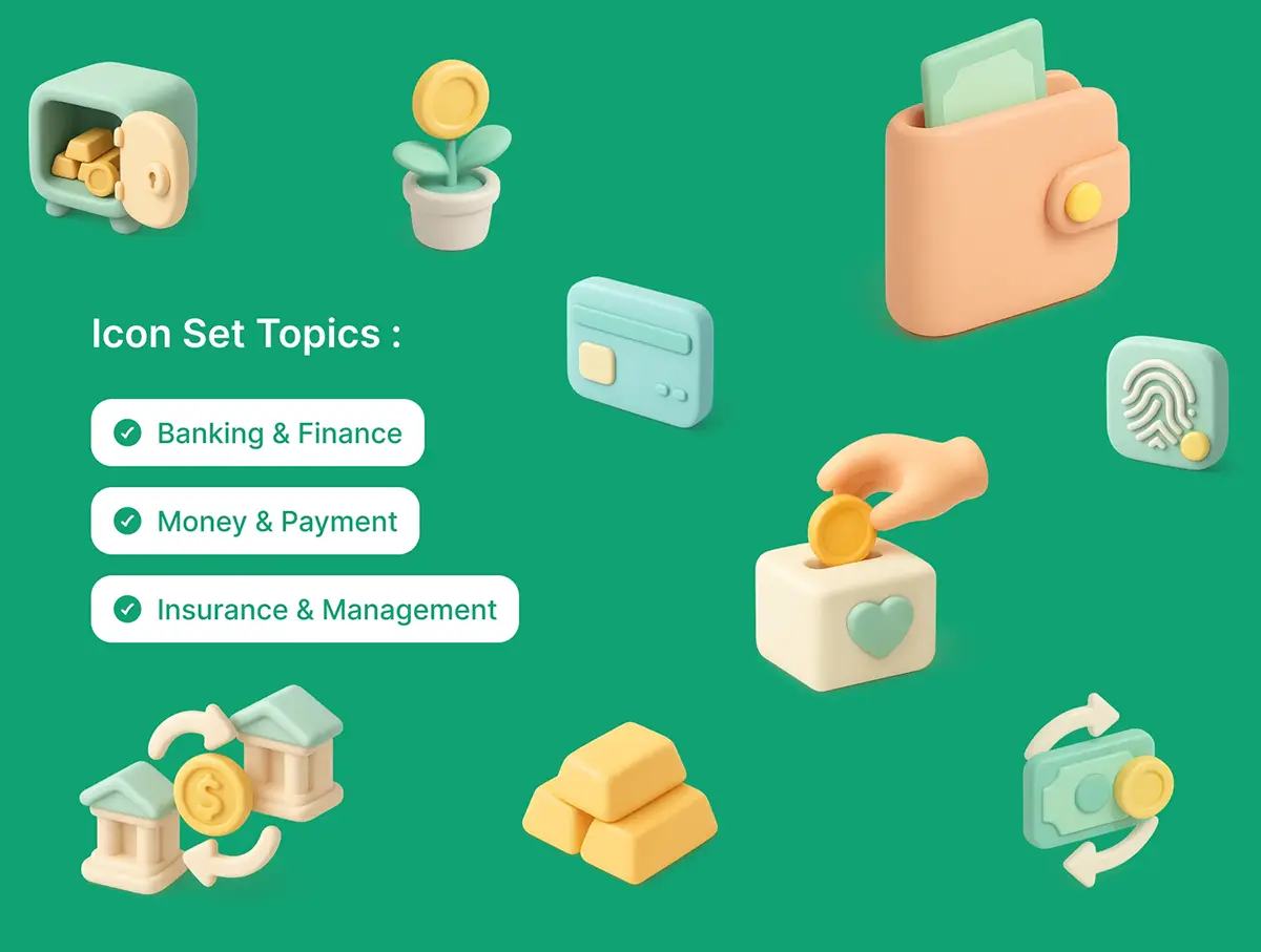 60+款柔软粘土风格银行金融业3D图标icon合集png免抠图设计素材 Banking 3D Icon Set