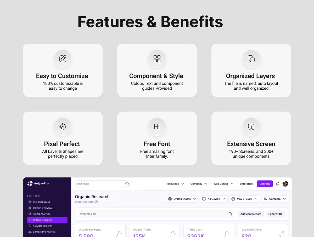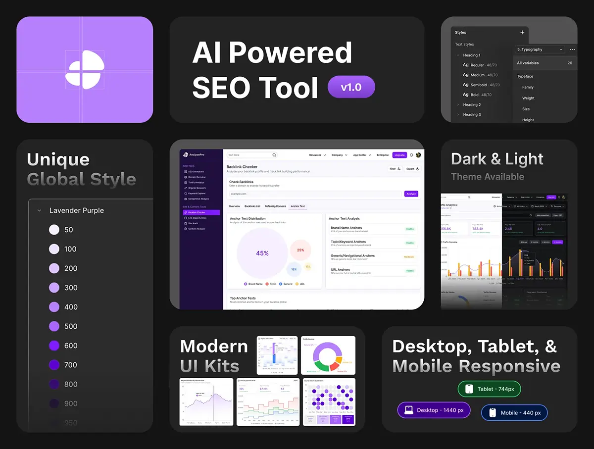 300+屏AI驱动的SEO优化工具后台管理界面UI设计Figma源文件 AI Powered SEO Tool