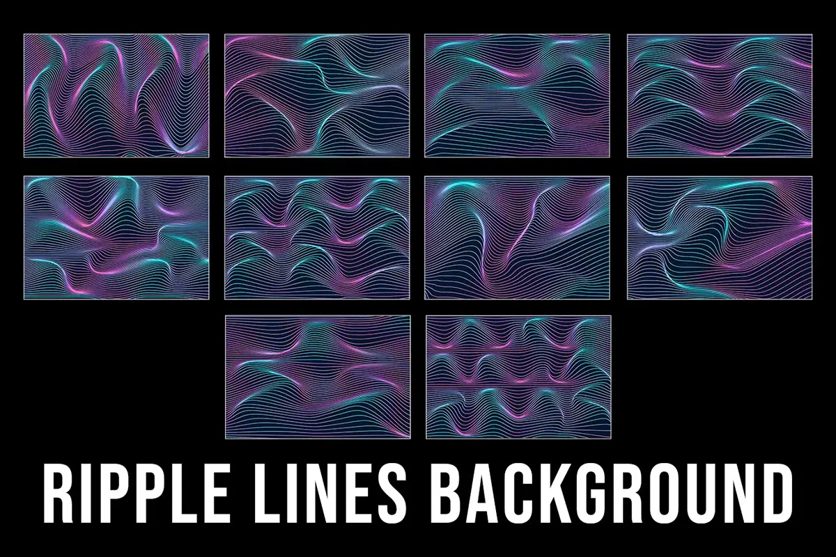 10款波浪波纹渐变网络线条纹理背景图片矢量素材 10 Gradient Ripple Lines Backgrounds 12