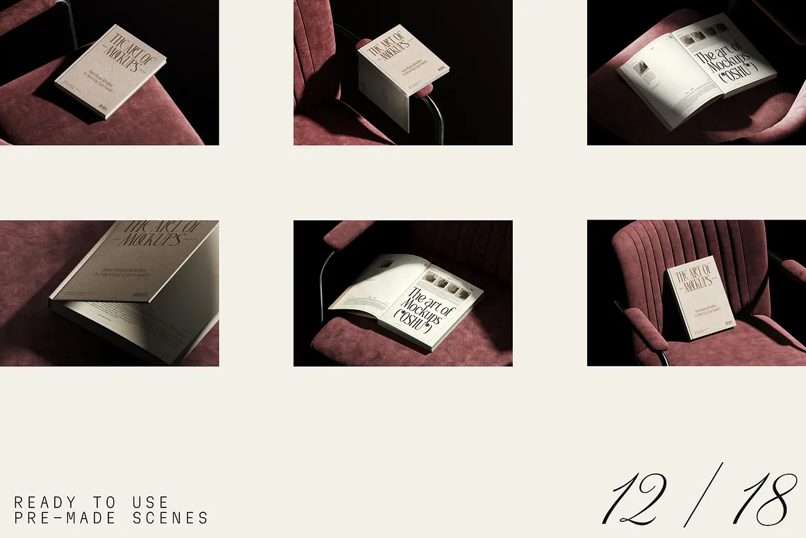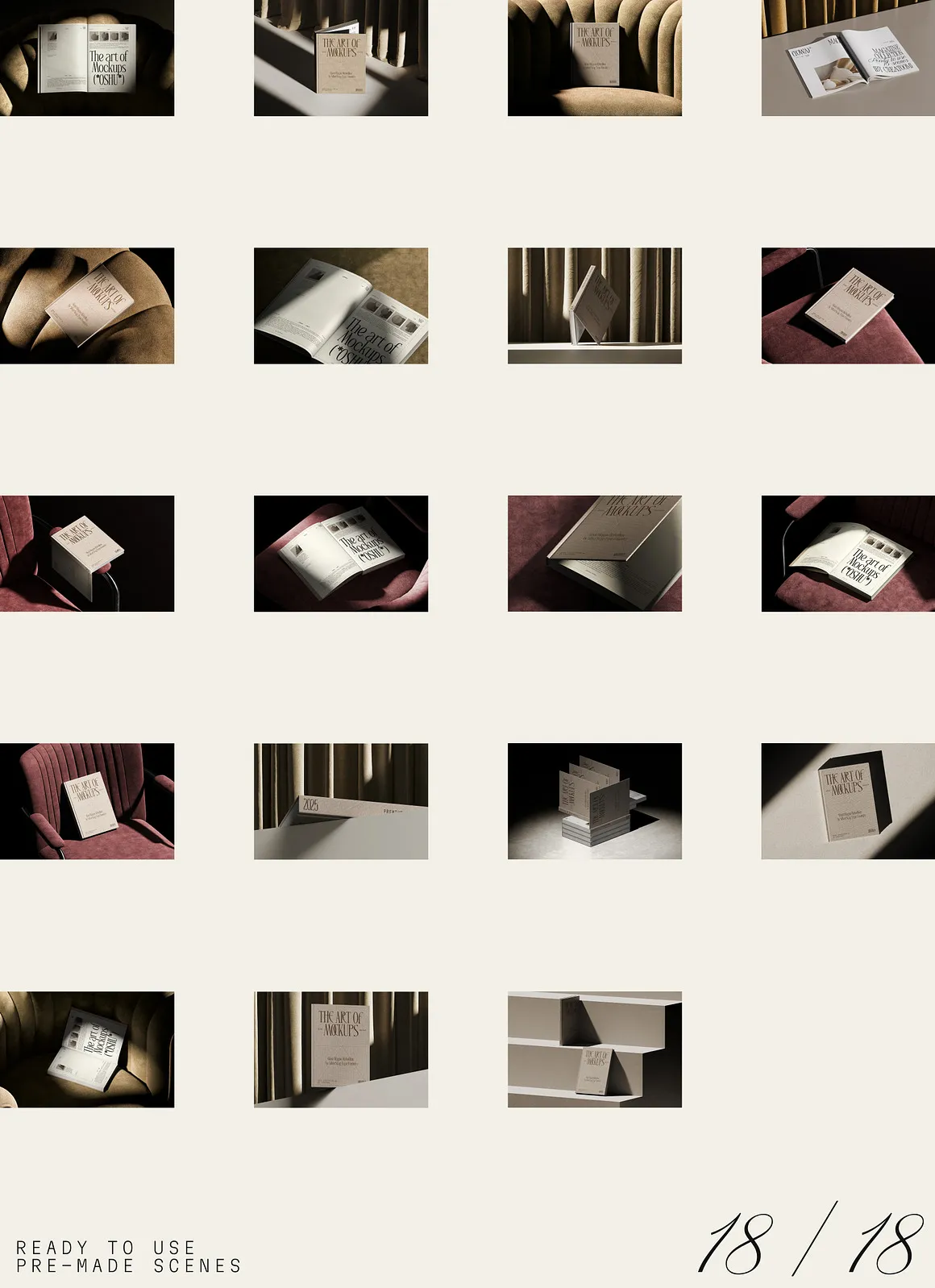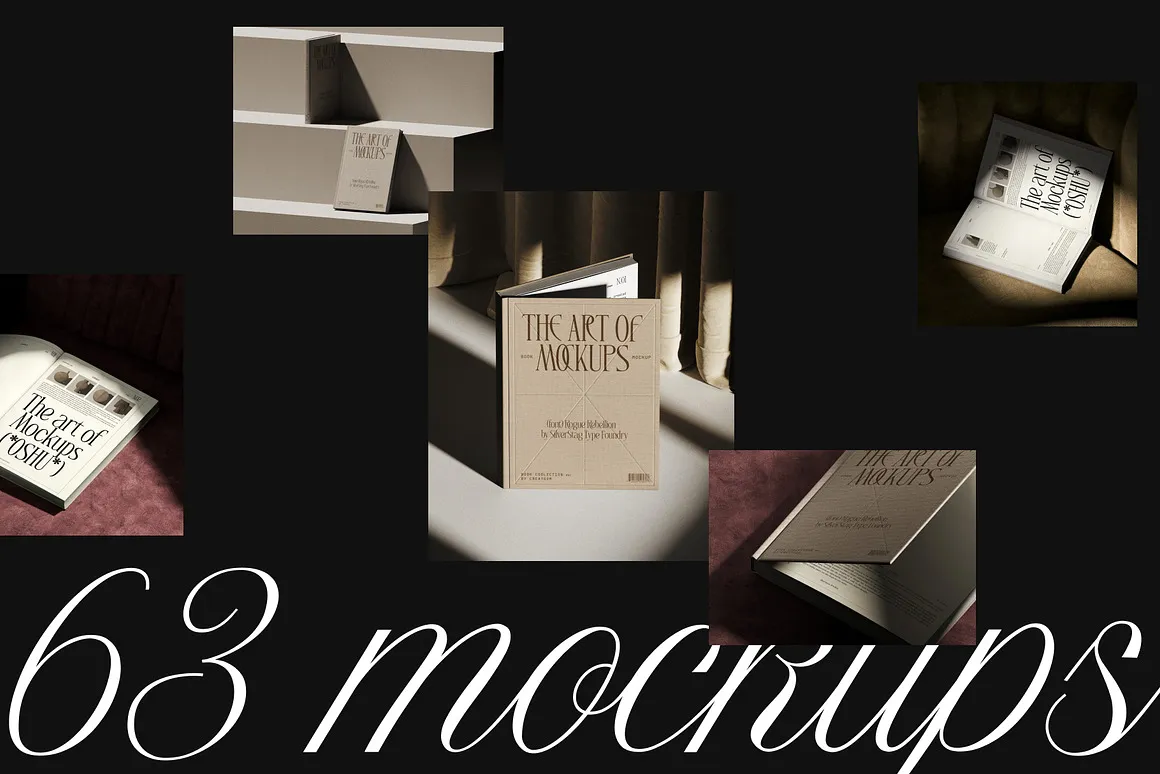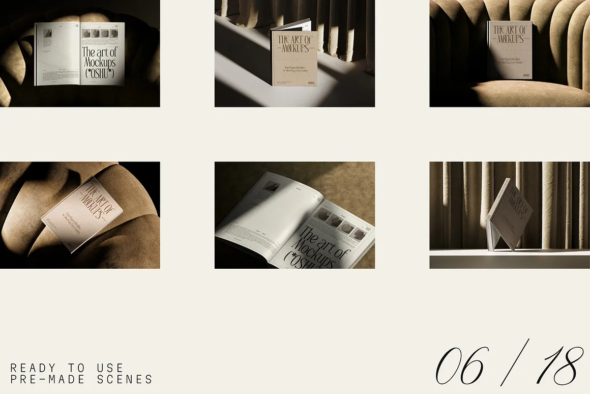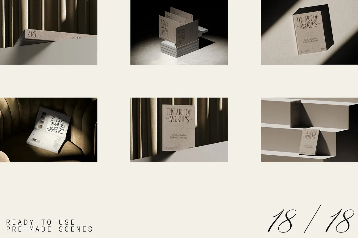 63款硬面精装书籍装帧封面排版设计时尚优雅文艺光影展示效果图ps样机 Book mockups V2 (63 PSD)