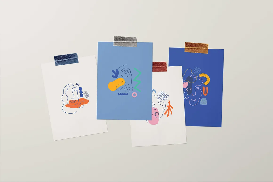 简约扁平化创意时尚抽象装饰艺术文创手绘插图插画ai矢量设计素材 Abstract Face