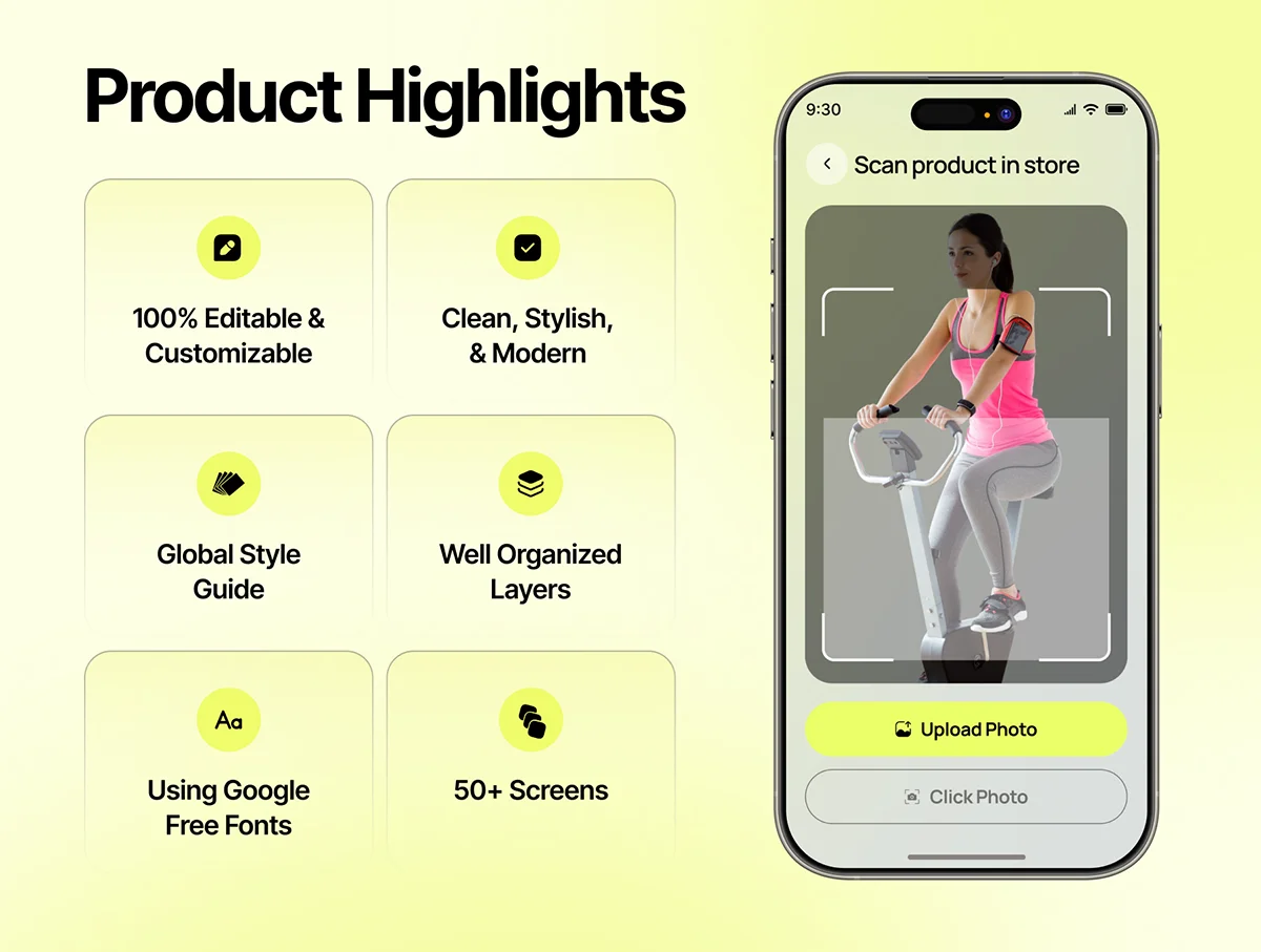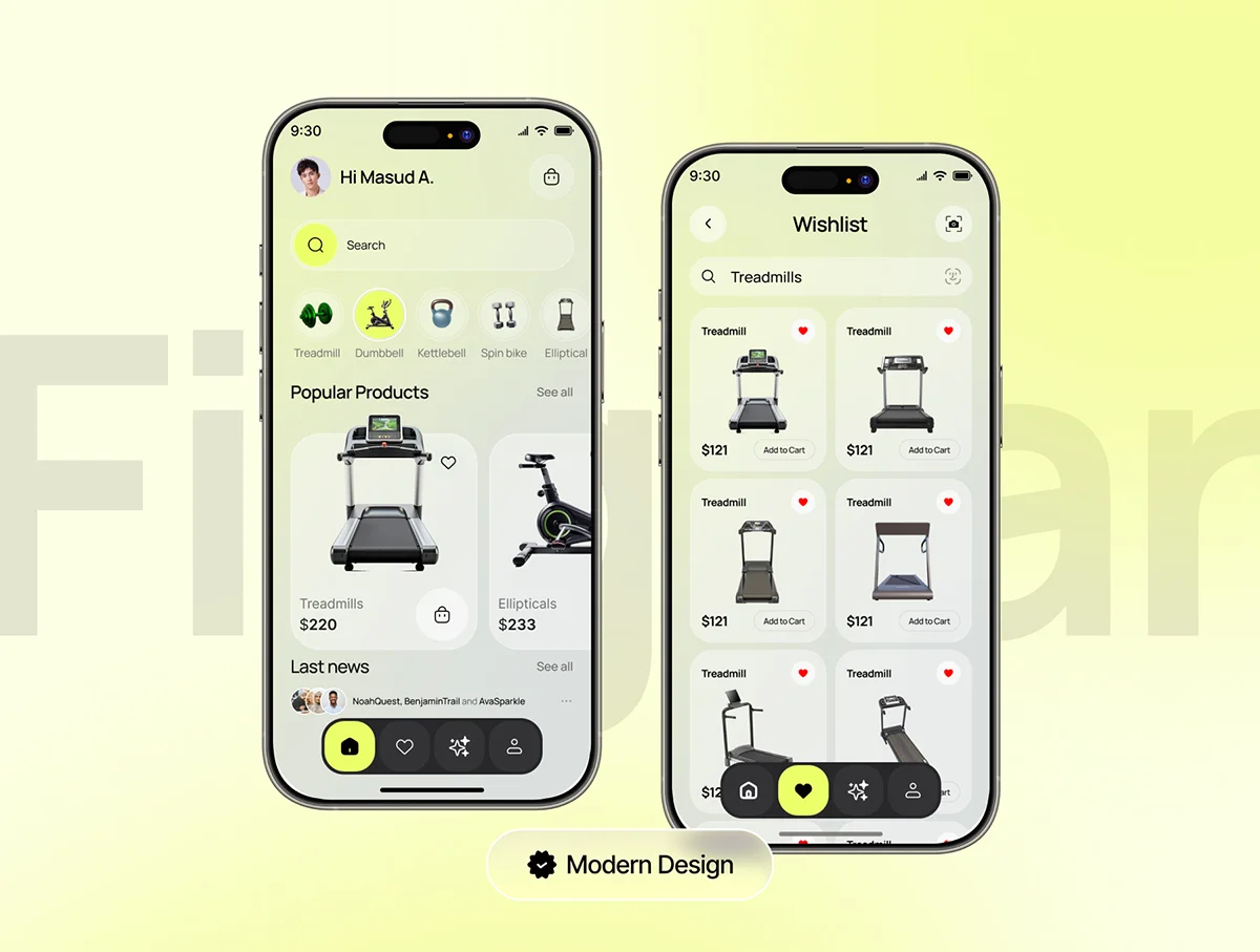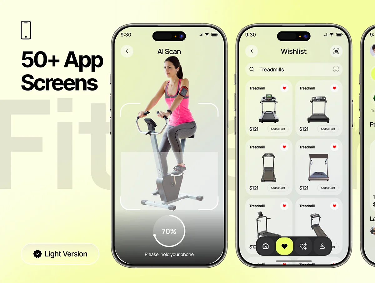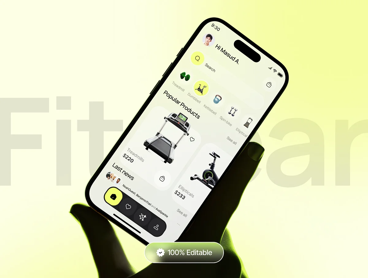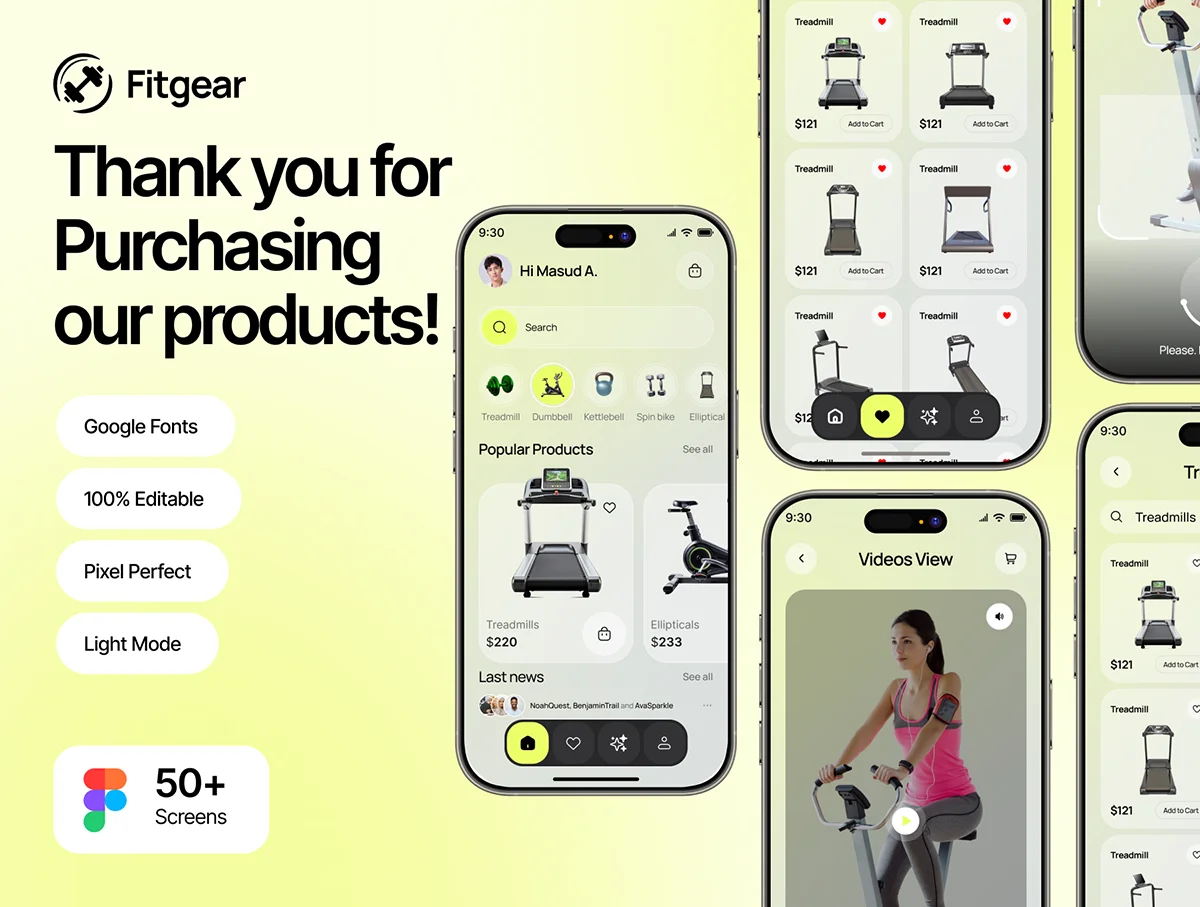 AI健身器材电子商务商店应用程序UI套件 Fitgear – AI Fitness Equipment Ecommerce Shop App UI Kit