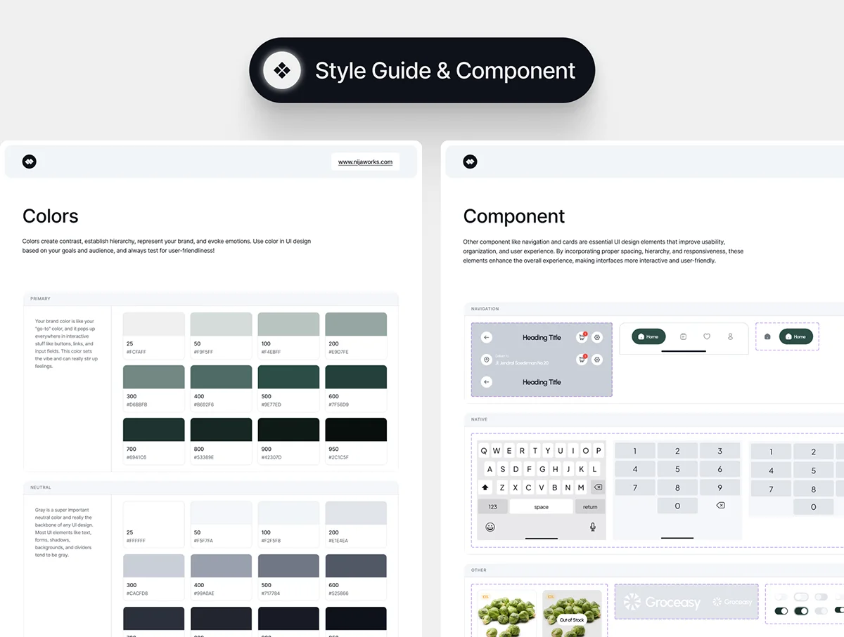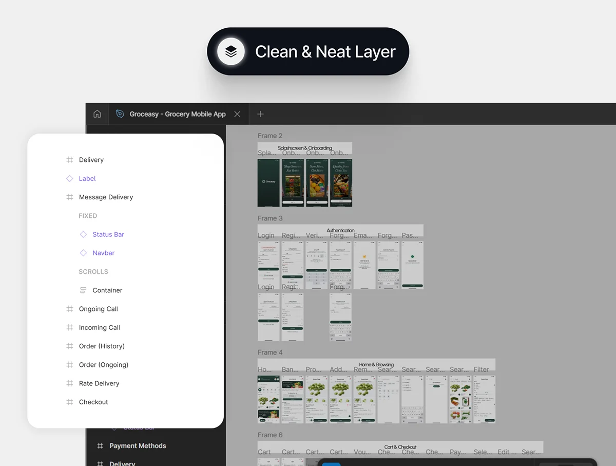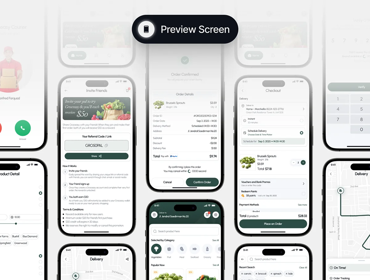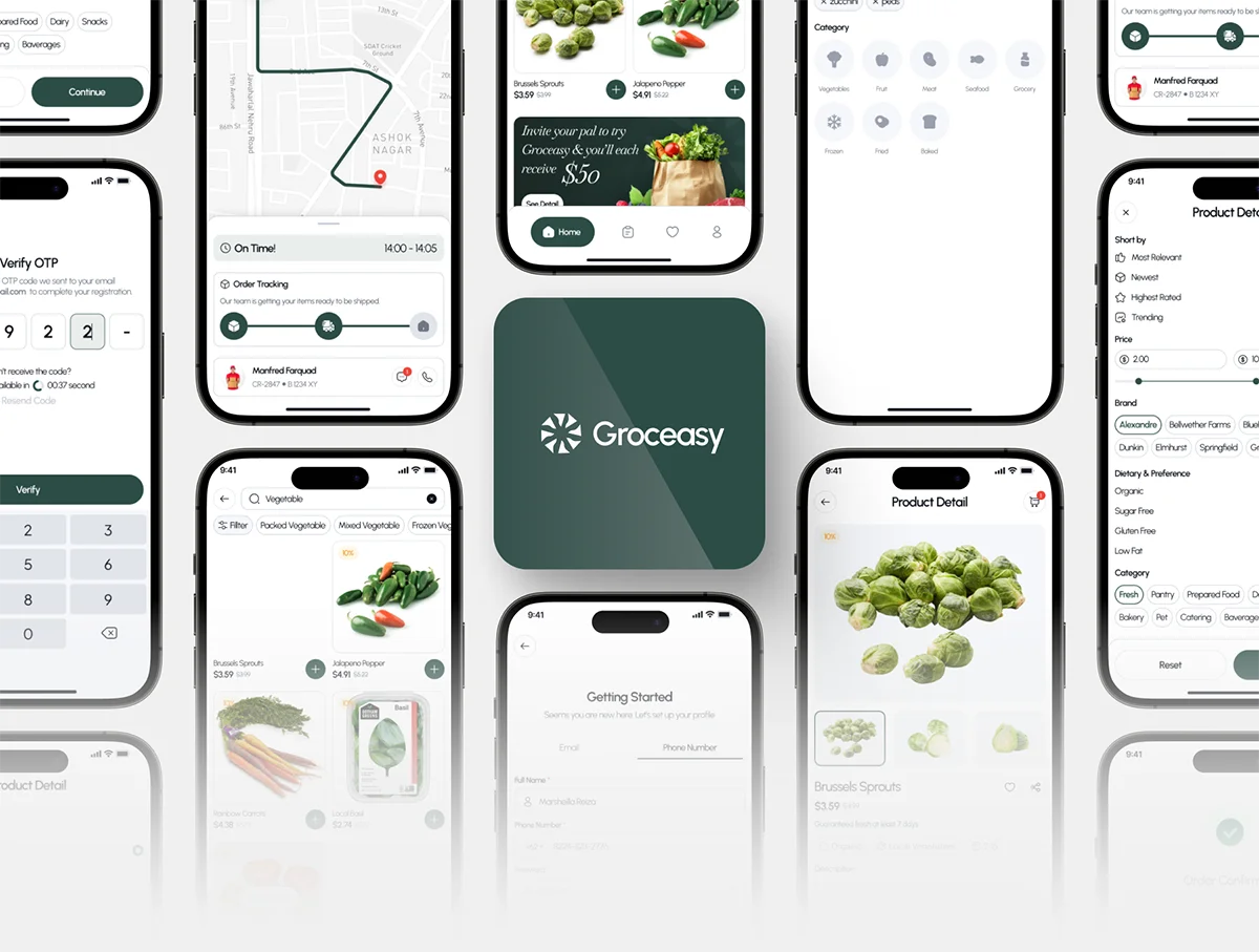 50+屏线上买菜生鲜外卖杂货店市场UI工具包 Groceasy – Grocery Mobile App