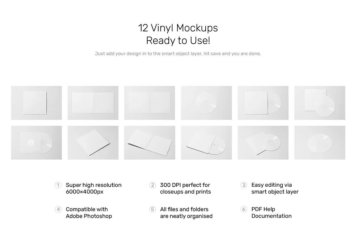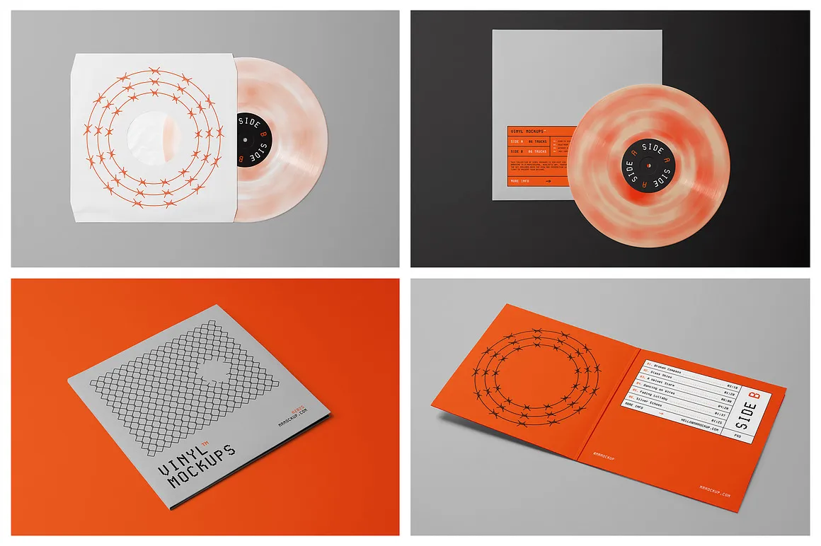 12款黑胶唱片CD碟片音乐专辑封面包装设计作品展示效果图ps样机 Vinyl Mockups
