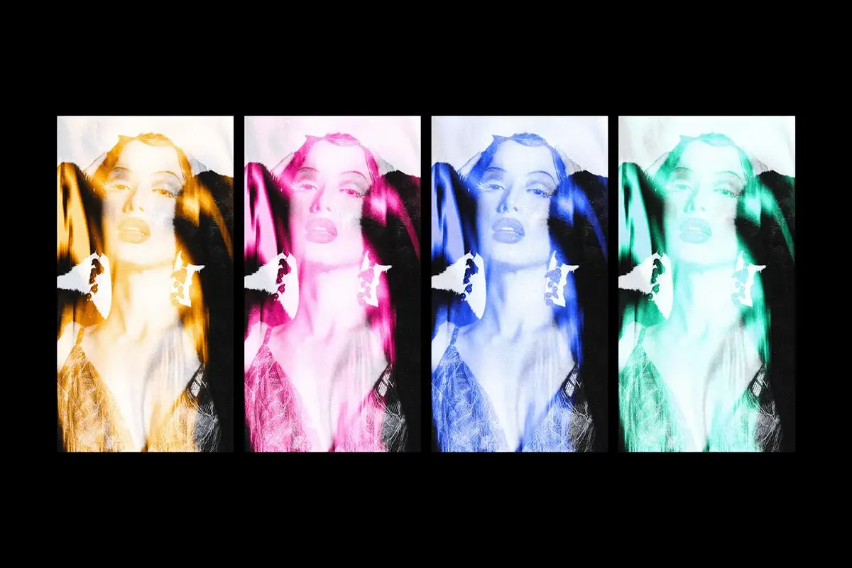 潮流复古黑白迷幻漏光梦幻光晕艺术人像照片后期ps特效样机模版 Aura Leak Photo Effect