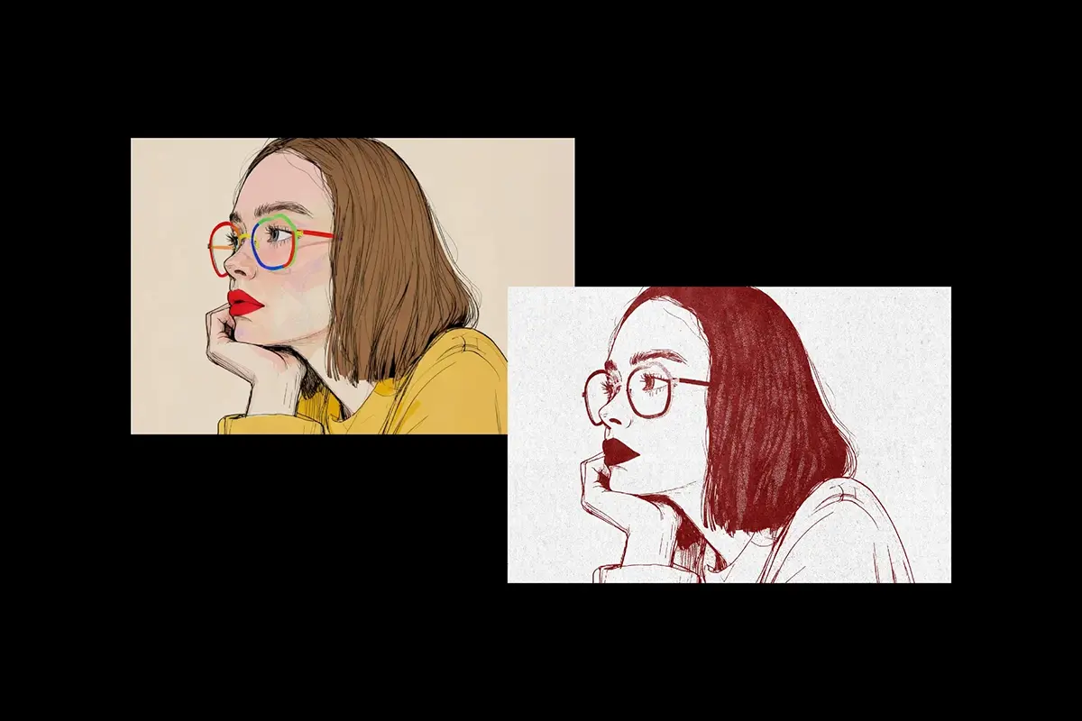 全彩艺术作品可快速打印为单色效果,边缘清晰锐利,纹理细腻如天鹅绒。这种风格适合海报、书籍或杂志封面、服装图案、包装袖标以及社交媒体视觉设计。单一强烈色彩在远处呈现标志性效果,而微妙的纸张色调则将氛围引导至档案保存或流行风格。编辑通过智能对象进行,可快速更换颜色。该套装包含 2 个高质量 PSD 文件,分别为 竖向和横向布局。