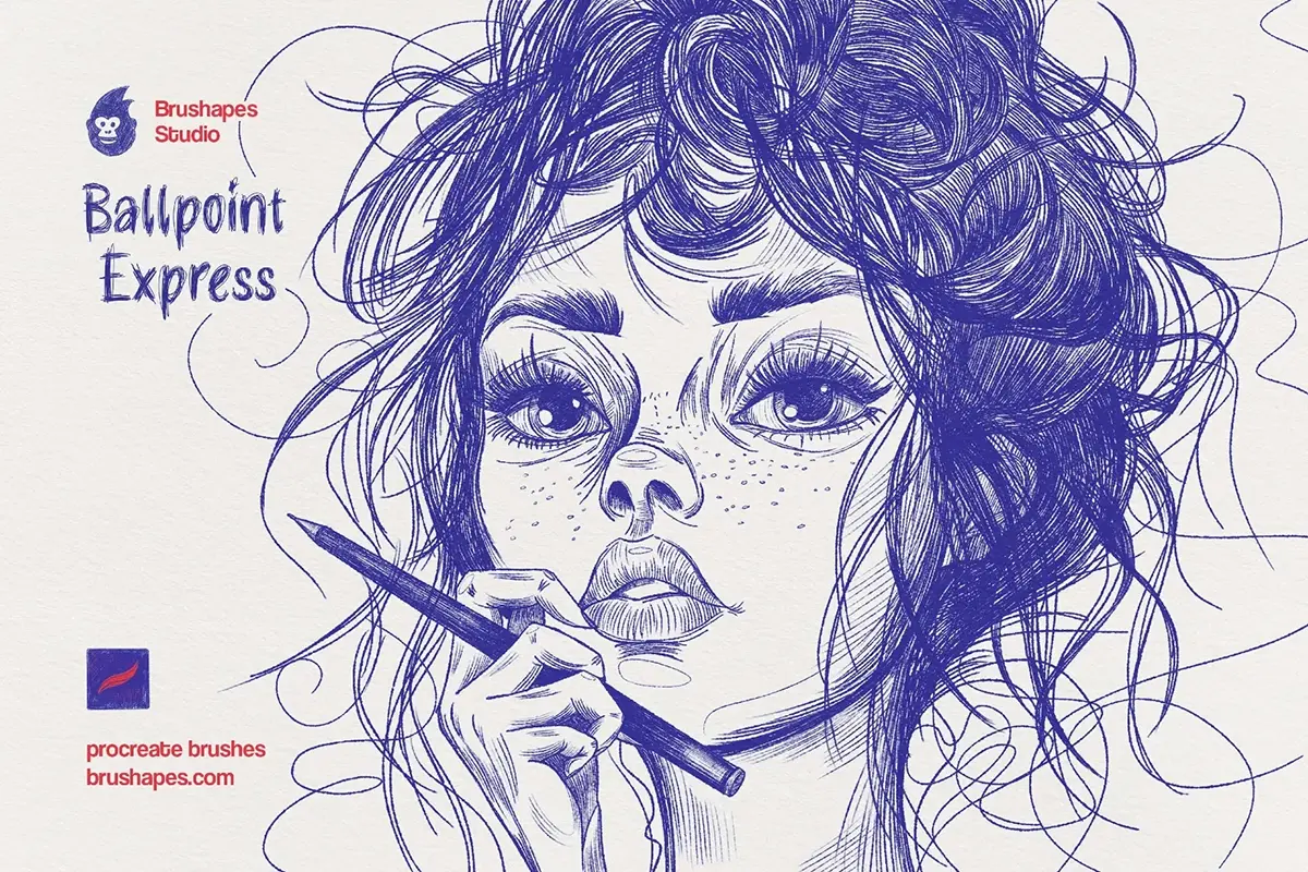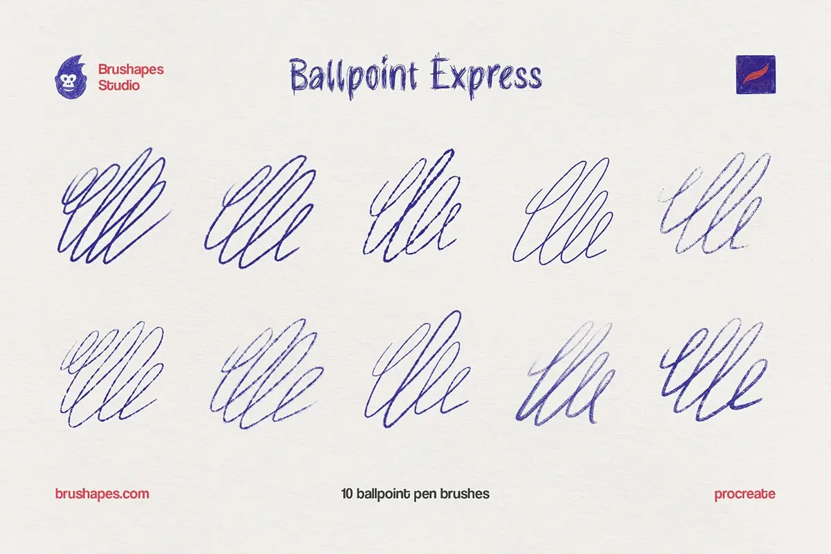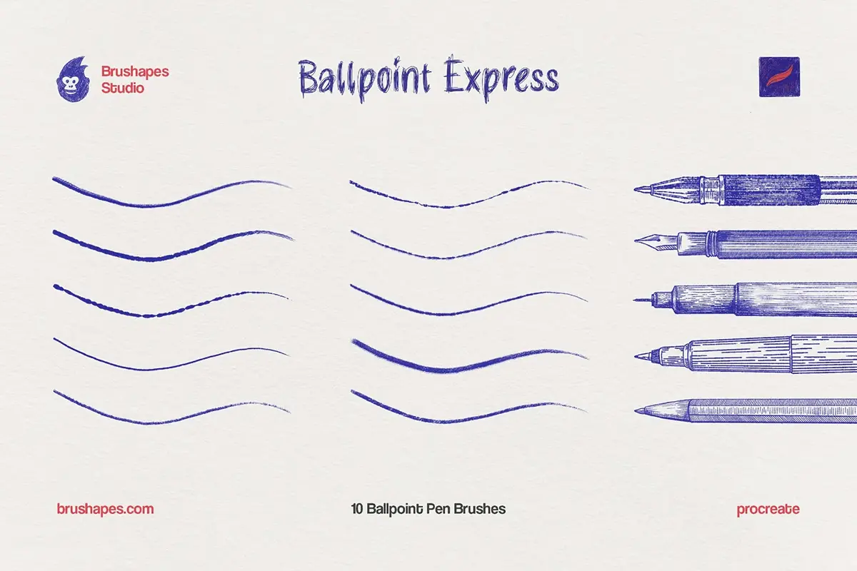 10款钢笔勾线笔圆珠笔手绘草图速写绘画插图插画Ai/Ps/Affinity/Clip/Procreate笔刷素材 Ballpoint Pen Brushes