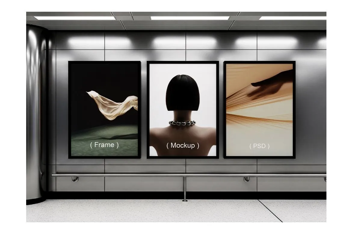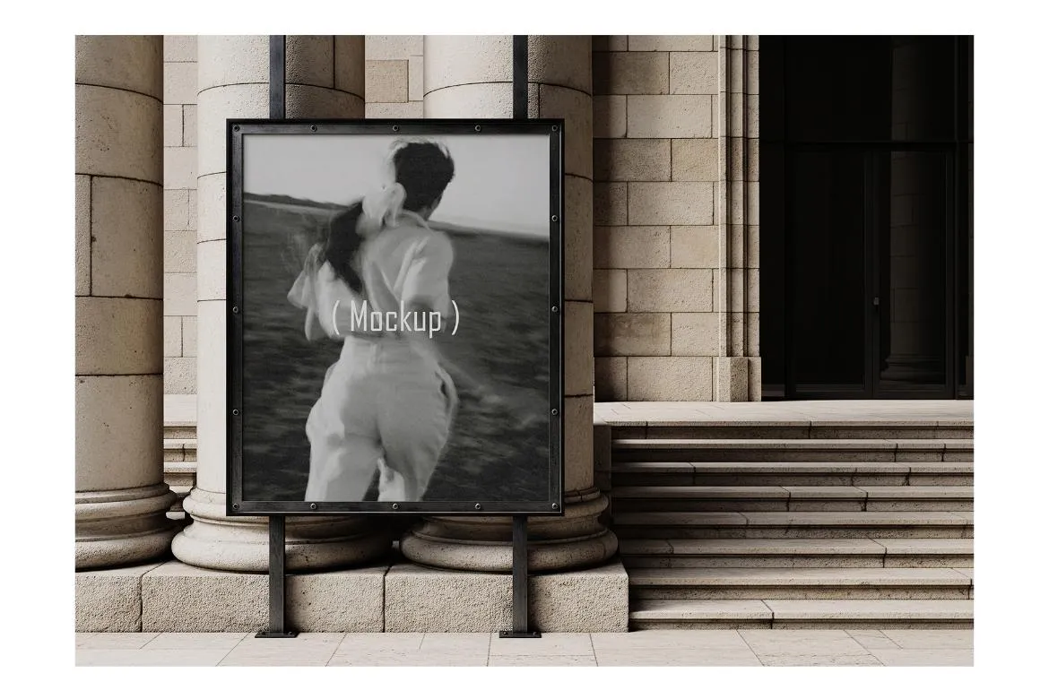 7款户外海报工业风招贴导视灯箱广告牌设计作品展示效果图ps样机 Bundle Frame & Board Mockup