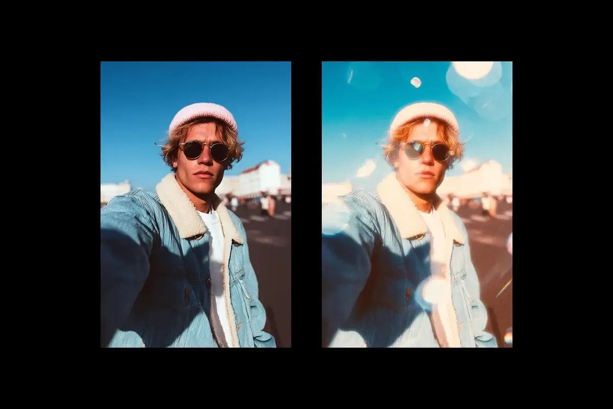 潮流复古胶片梦幻散景光斑漏光浪漫艺术人像后期ps特效样机模板 Bokeh Light Leaks Photo Effect