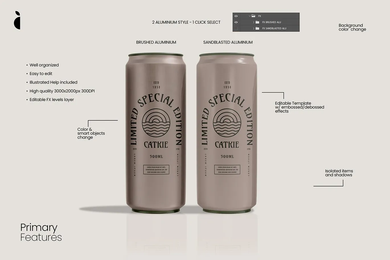 6款铝合金易拉罐模型饮料啤酒品牌包装设计贴图ps样机素材模板 Aluminium Can Mockup Kit Vol 1