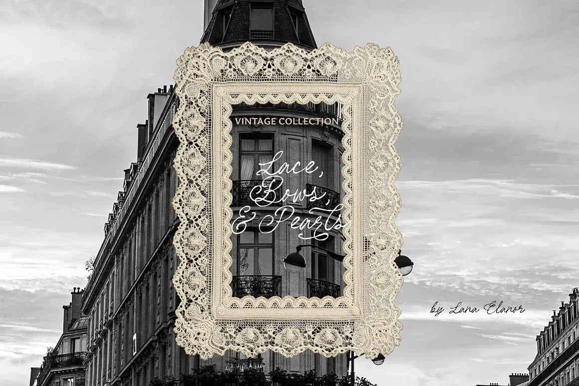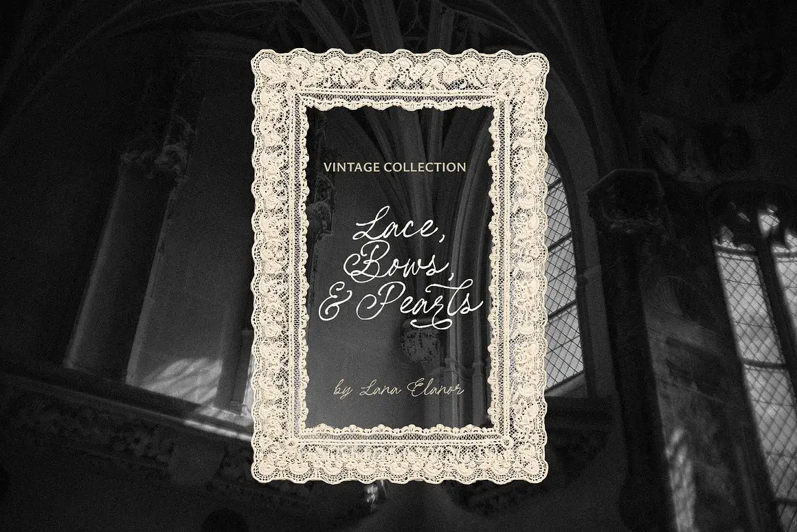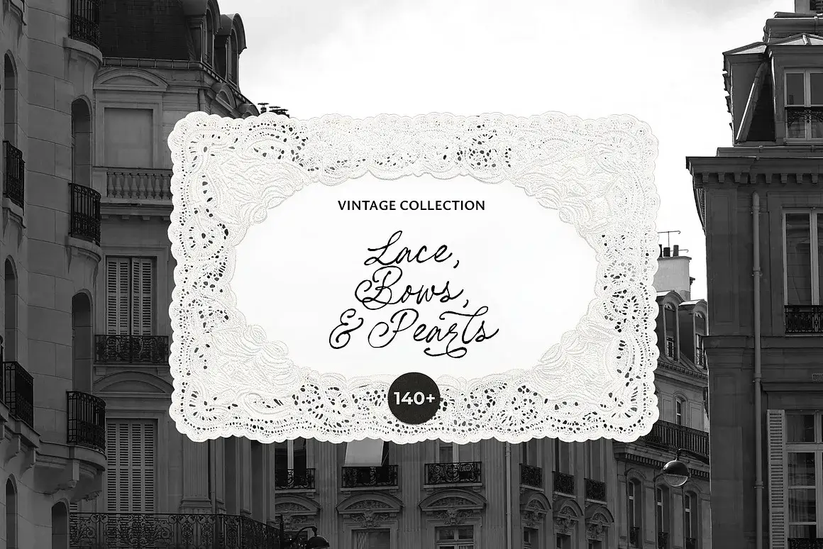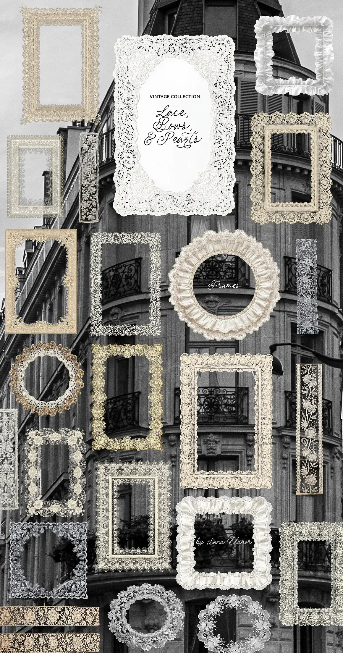 140款欧式复古宫廷婚礼蕾丝相框花边蝴蝶结拼贴png免抠图片素材 Vintage Lace, Bows & Pearls