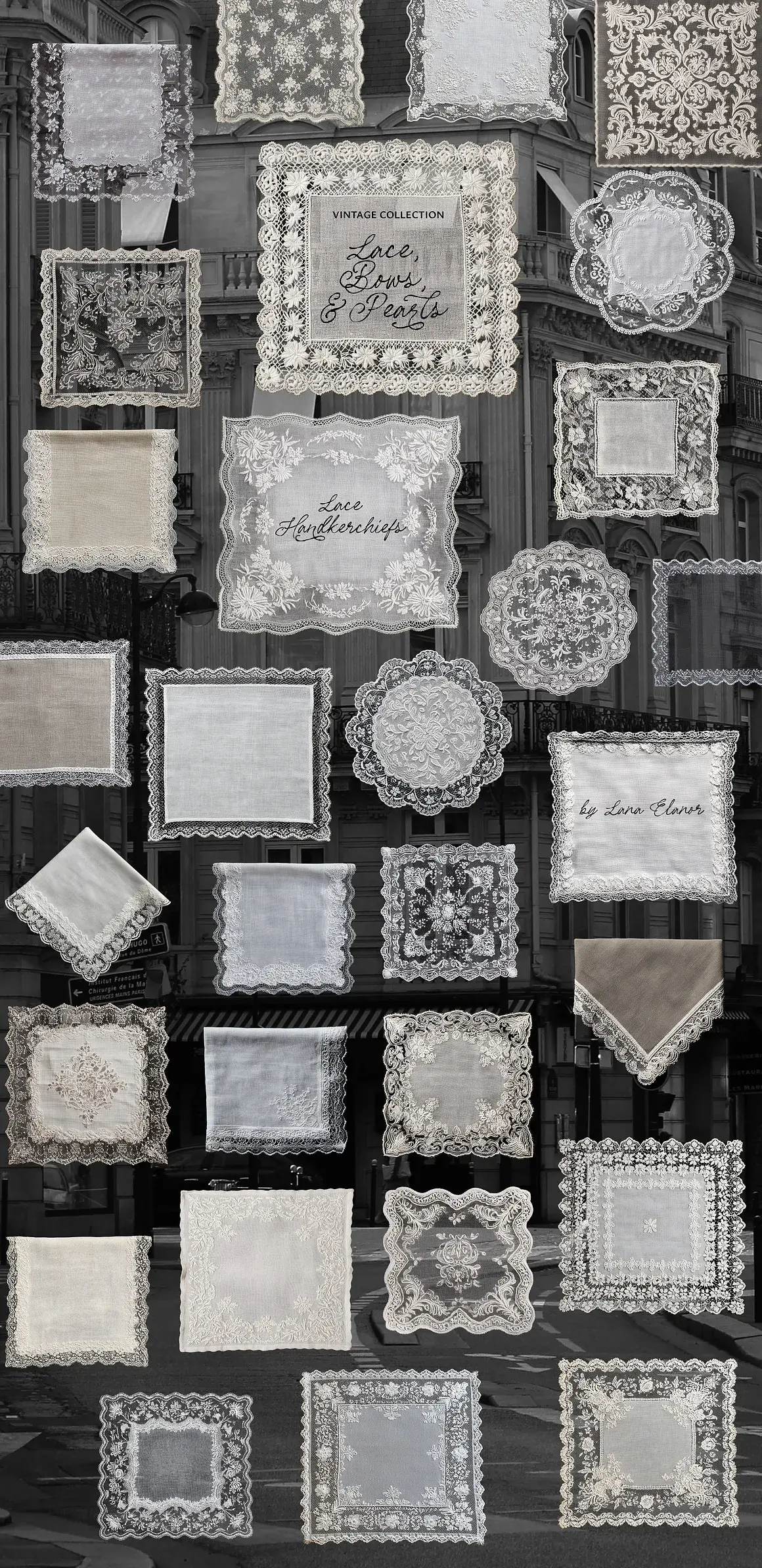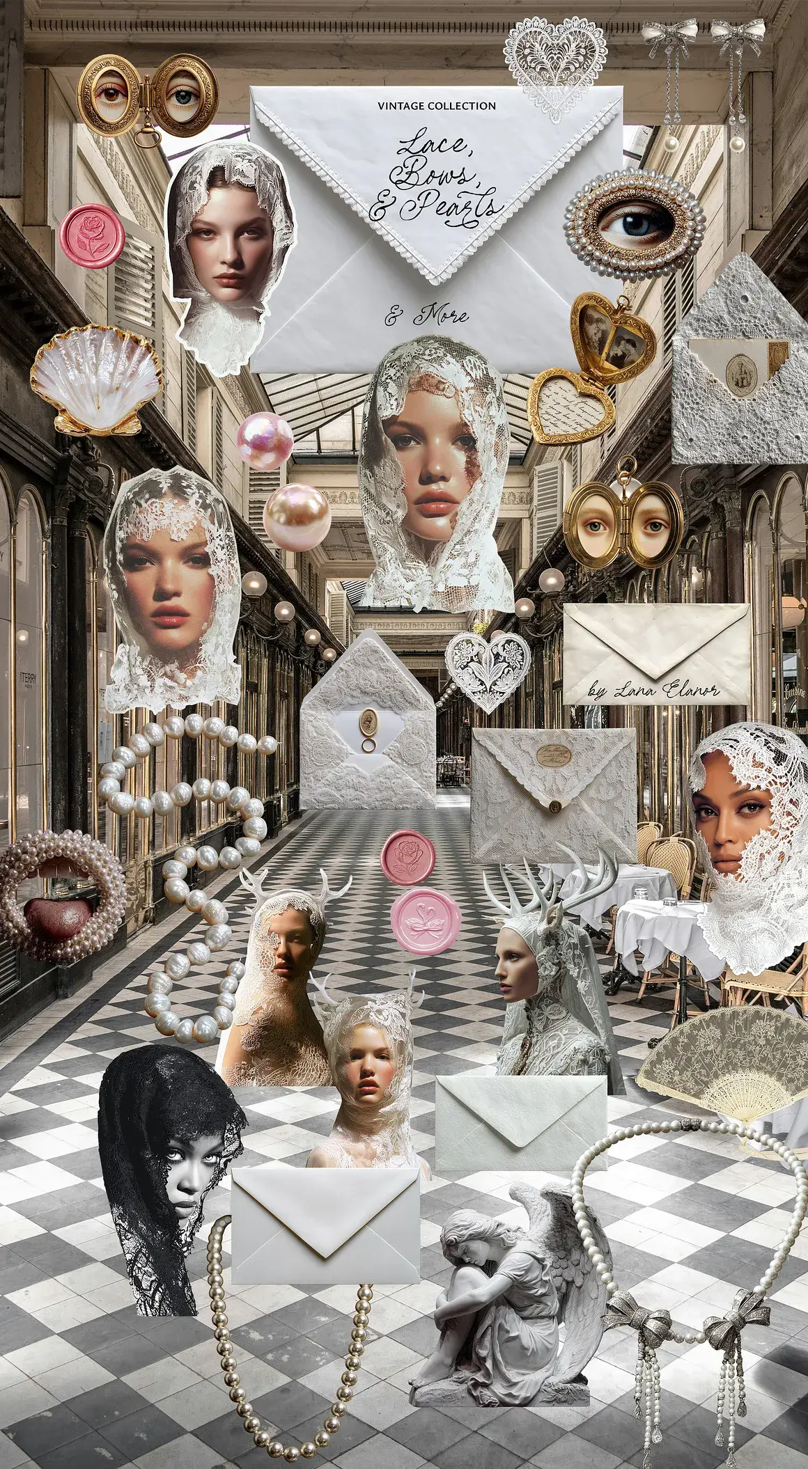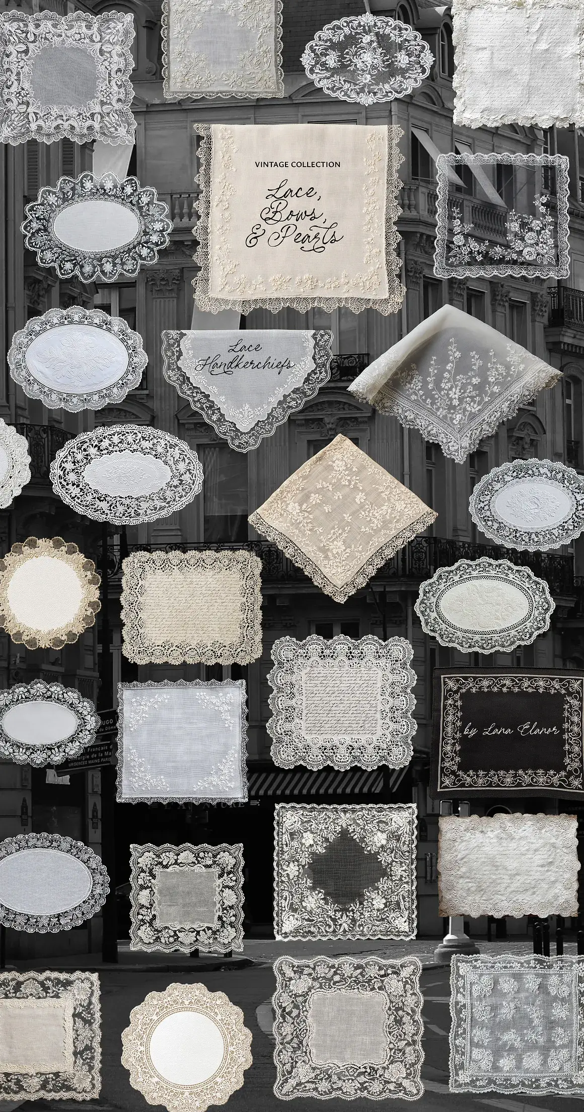 140款欧式复古宫廷婚礼蕾丝相框花边蝴蝶结拼贴png免抠图片素材 Vintage Lace, Bows & Pearls