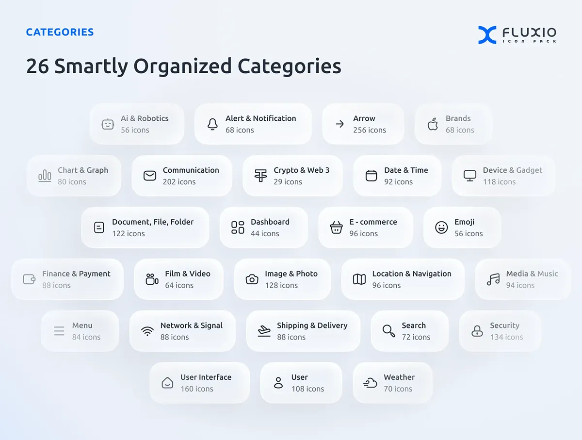 2400款全套通用网站App应用网页小程序仪表盘线性icon图标素材 Fluxio Icon Pro