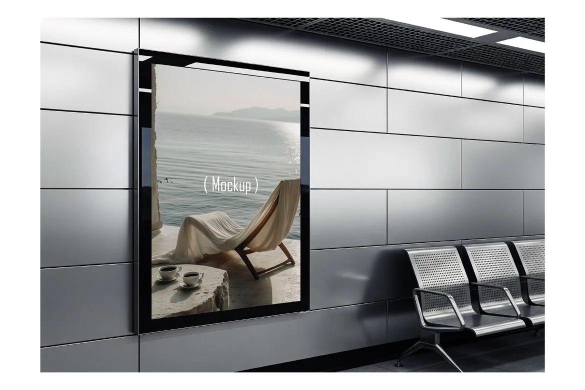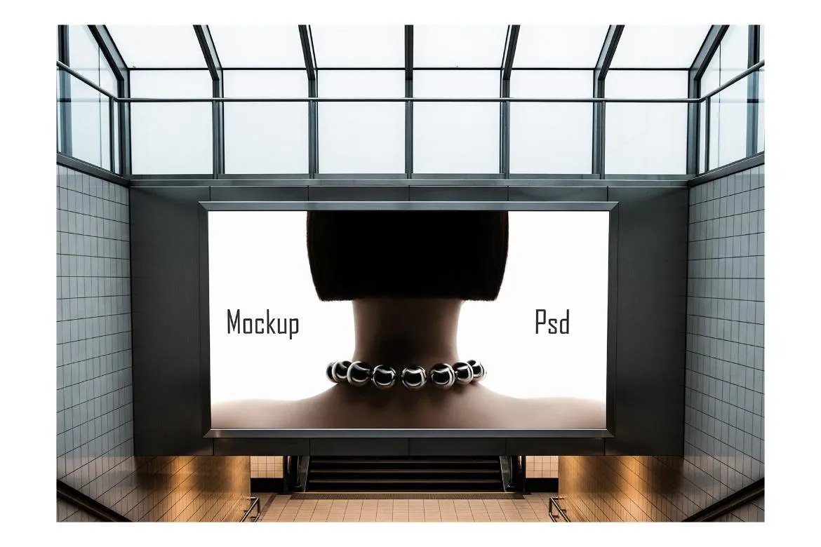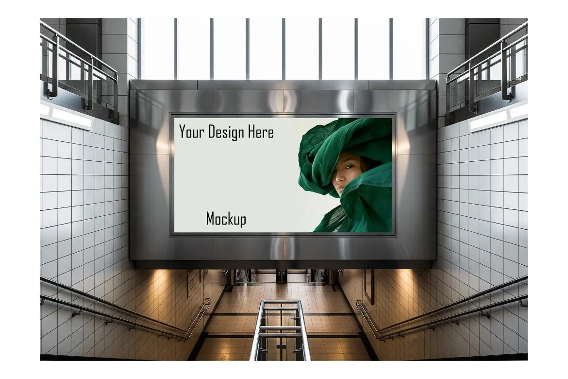 7款街拍地铁车站商场过道广告牌海报设计作品展示效果图ps样机 Billboard Mockup