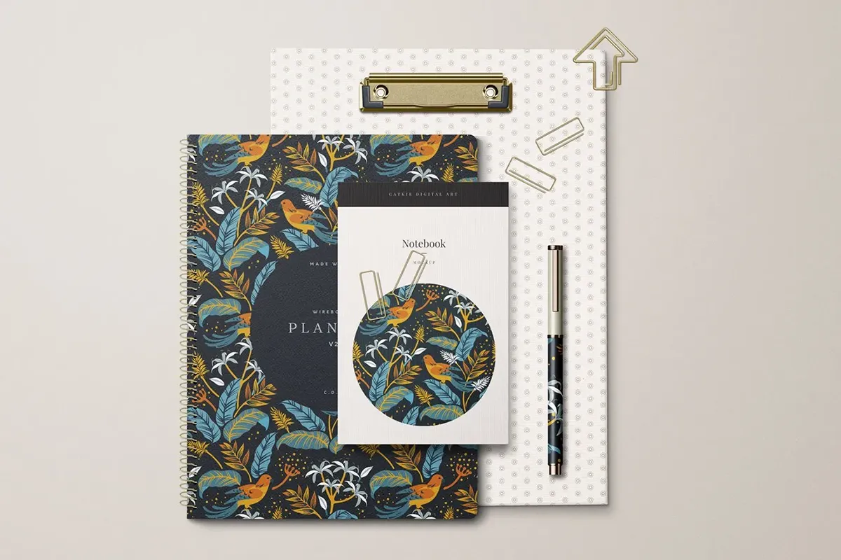 5款圈装记事本剪贴簿钢笔文具模型品牌包装设计贴图ps样机素材模板 Stationery Mockup Kit VOL1