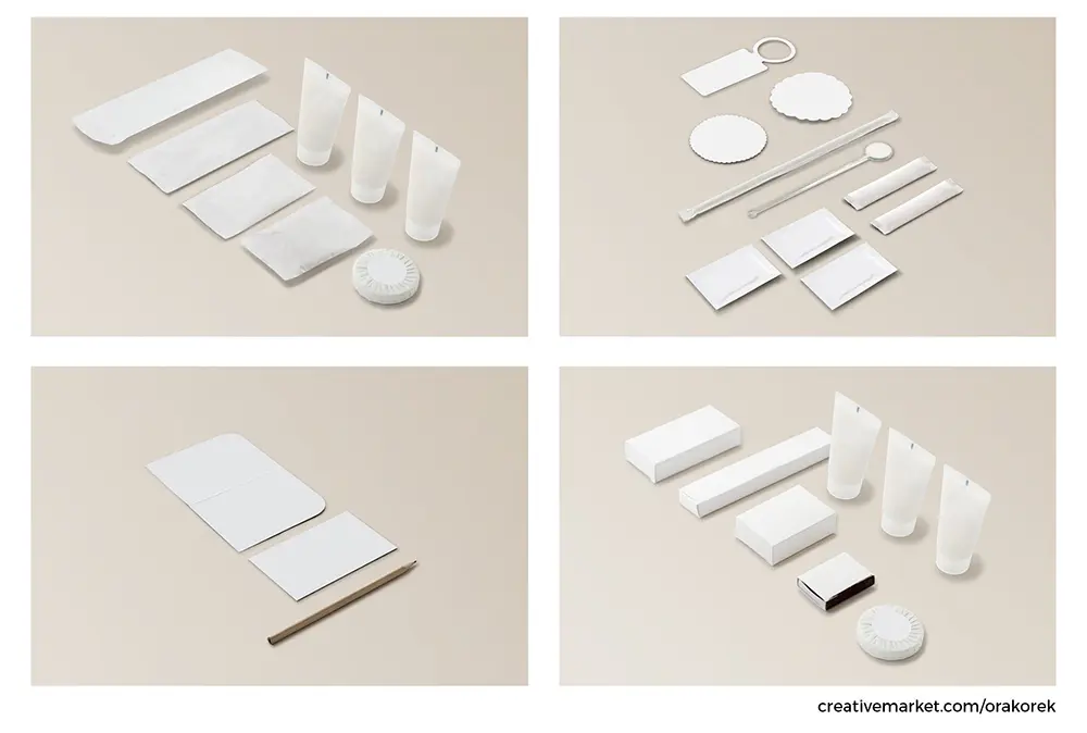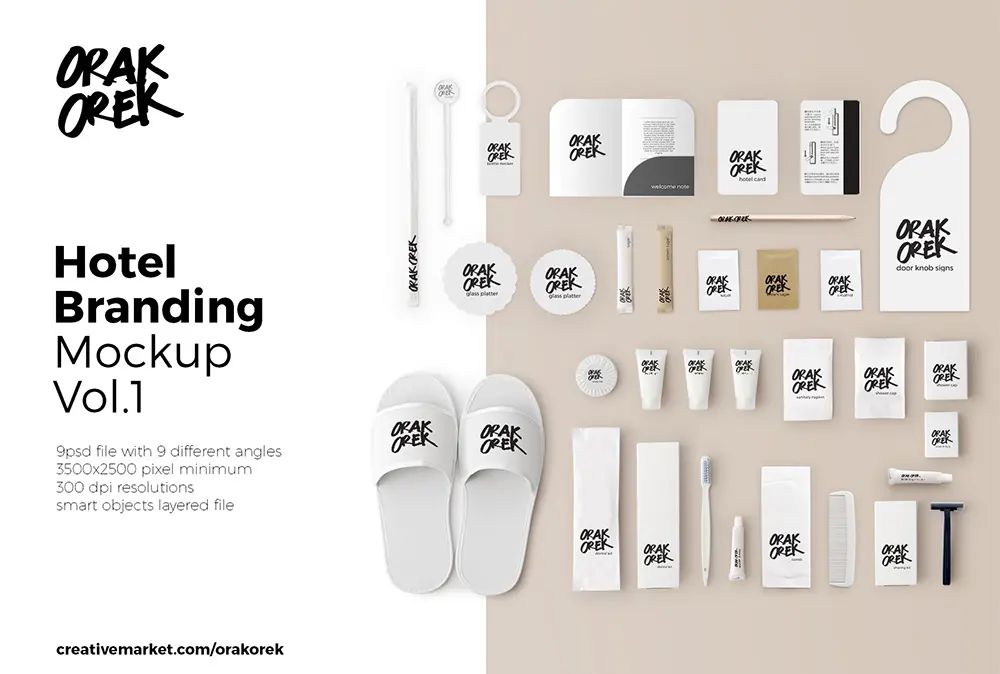 基于真实专业照片的酒店样机。只需打开psd文件,然后将设计放在对象上即可。所有对象和阴影都完全分开,因此您可以轻松地与它们一起玩并创建自己的原始自定义场景。
