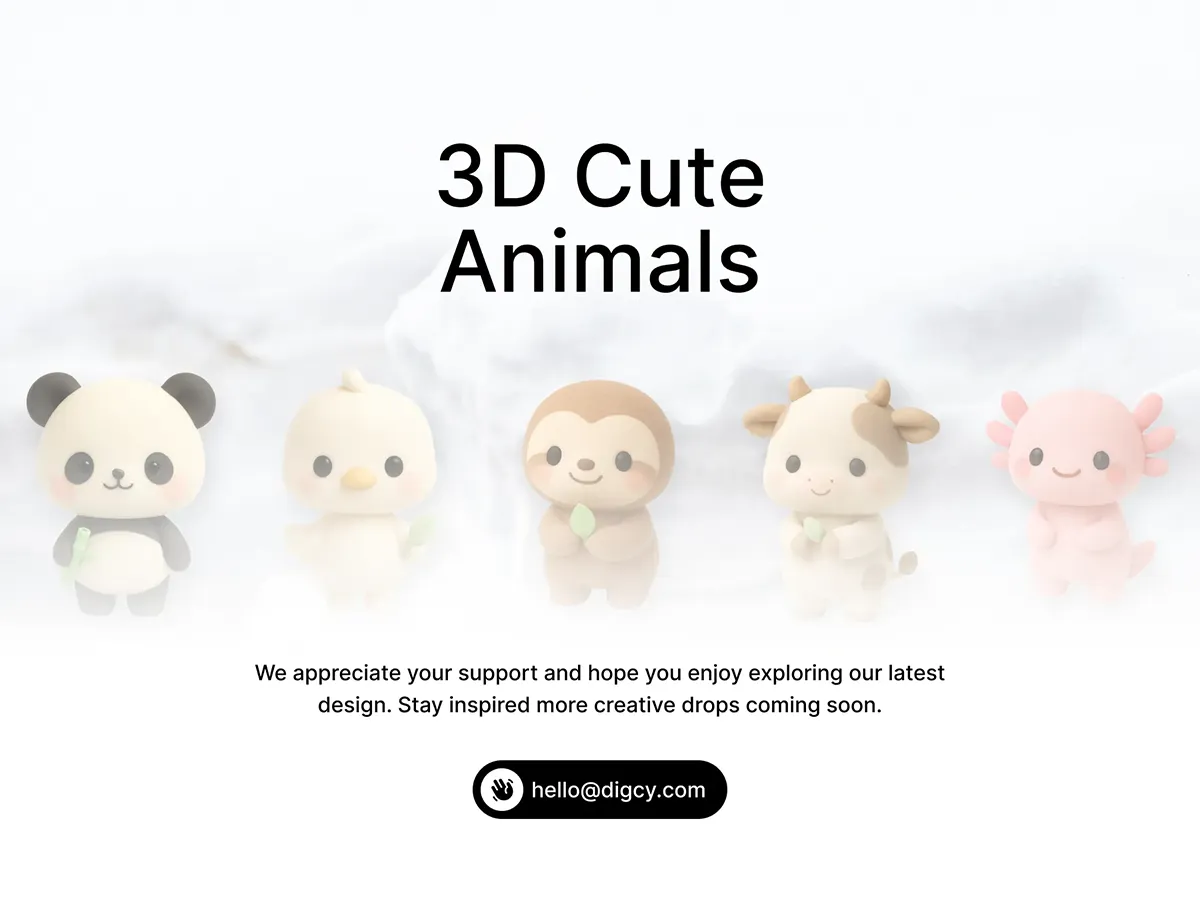 20款可爱趣味卡通3D立体动物宠物儿童插图插画png免抠图片素材 3D Cute Character Animals (20) x 5 Angles