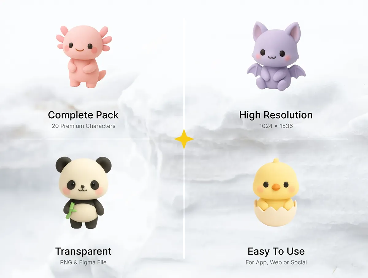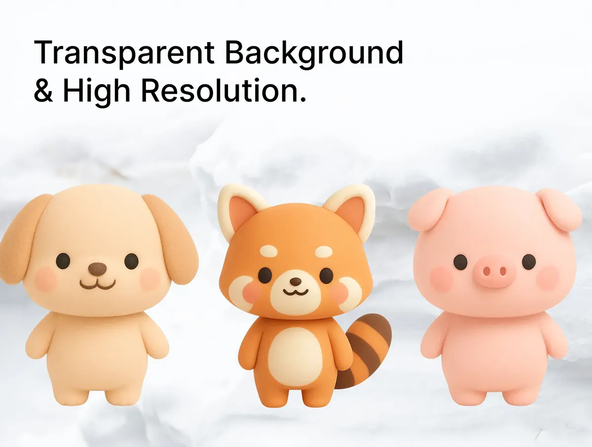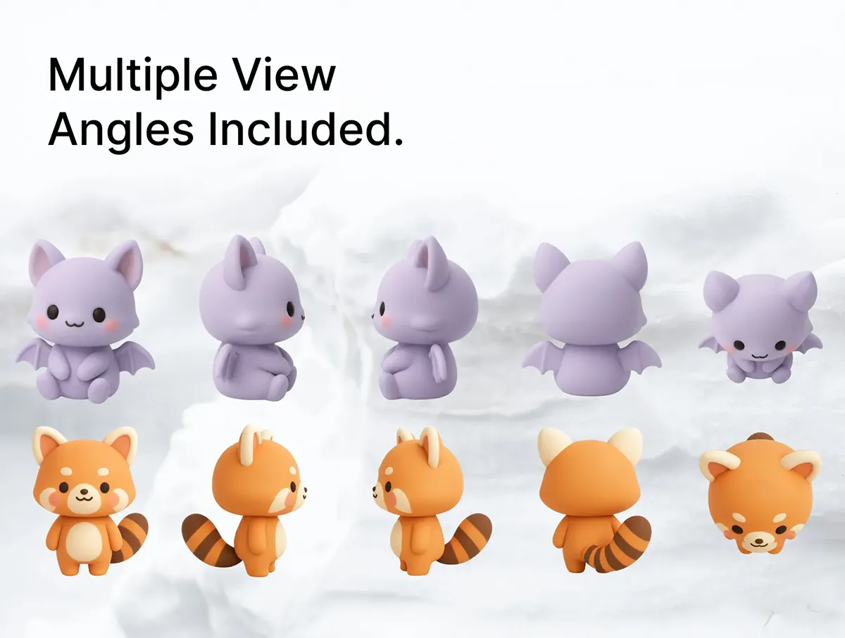 20款可爱趣味卡通3D立体动物宠物儿童插图插画png免抠图片素材 3D Cute Character Animals (20) x 5 Angles