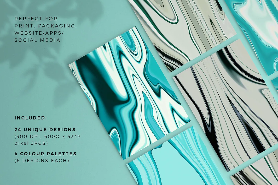 24款现代极简中性海洋波浪流体扭曲抽象艺术液态背景底纹图片素材 Oceanic swirl abstract backgrounds