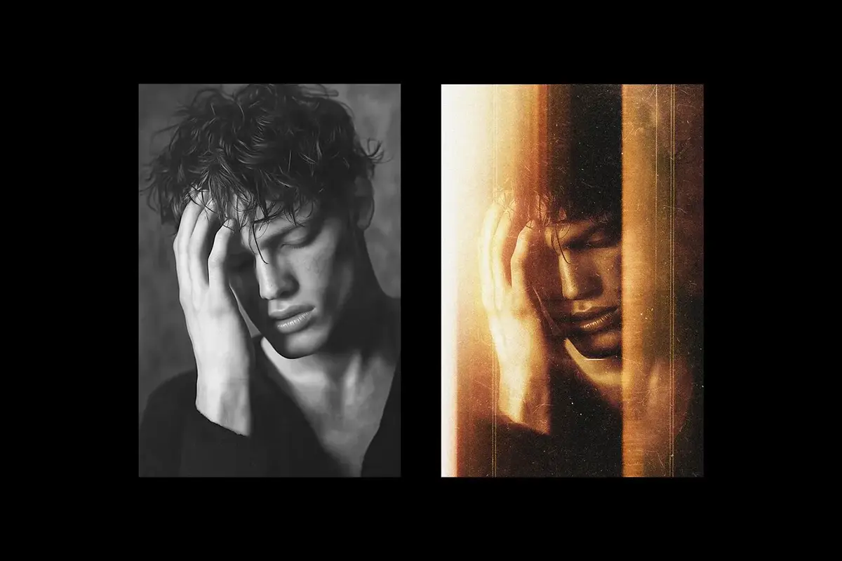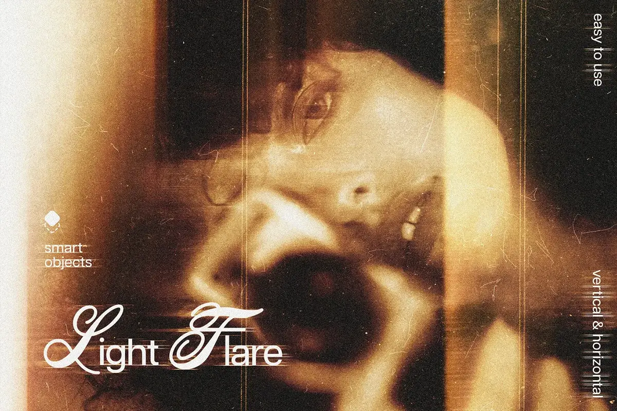 复古梦幻老照片光线泄露光晕颗粒纹理照片后期滤镜ps特效样机素材模板 Light Flare Photo Effect