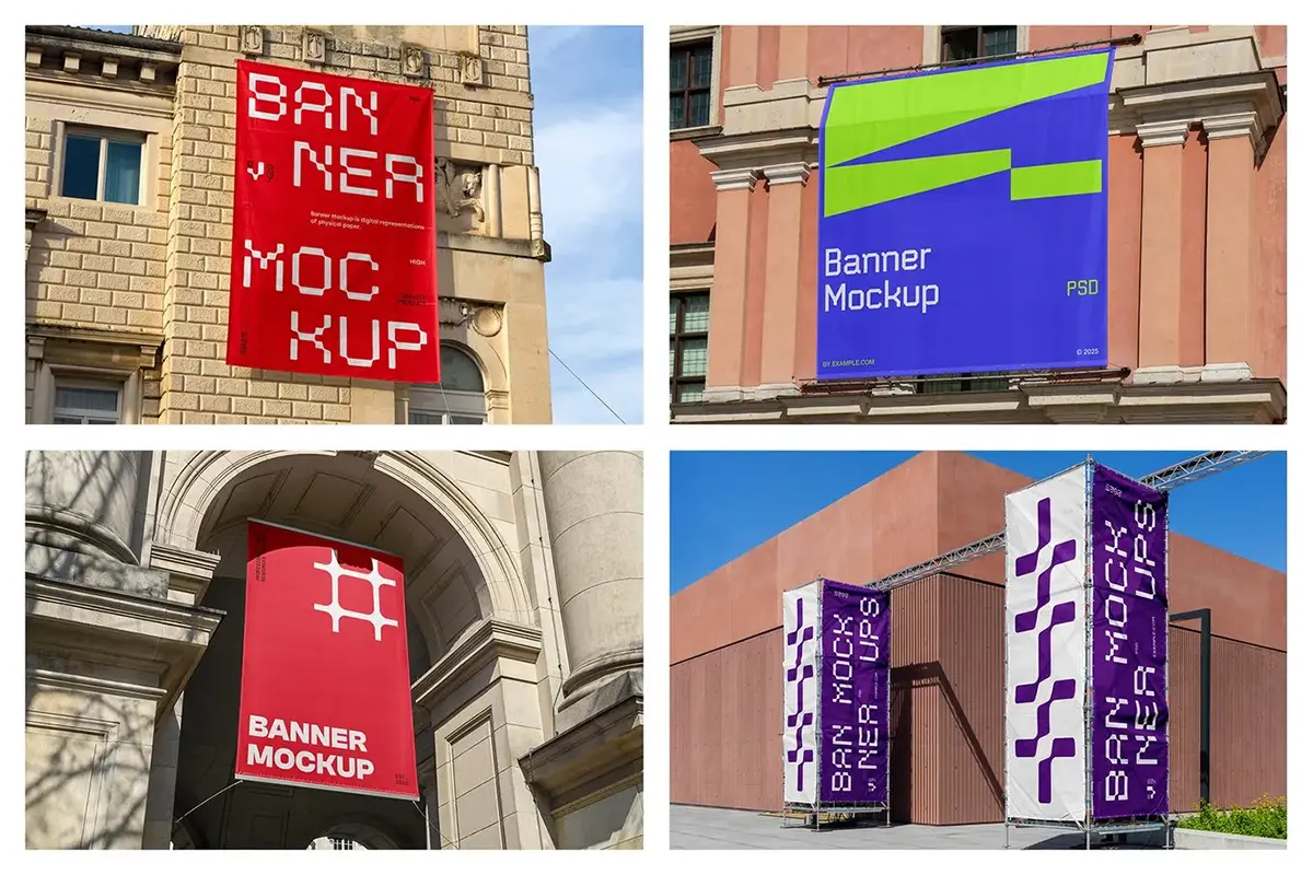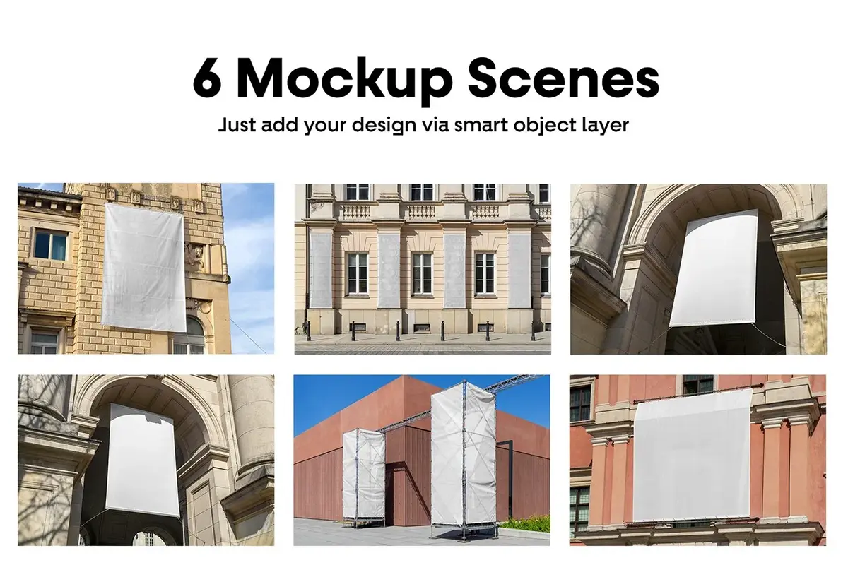 6款户外城市墙面横幅海报广告展示设计贴图ps样机素材模板 Commercial Banner Mockups vol.9