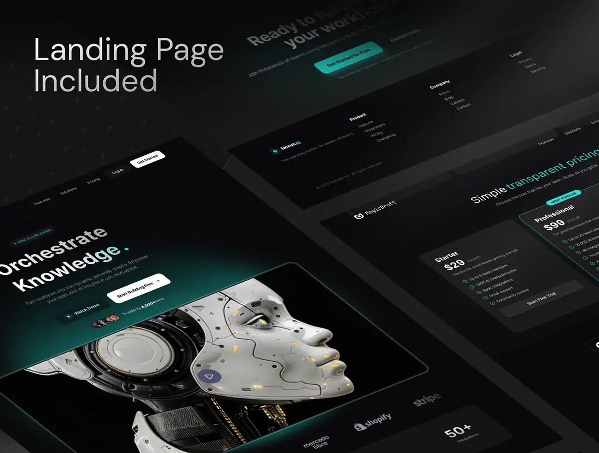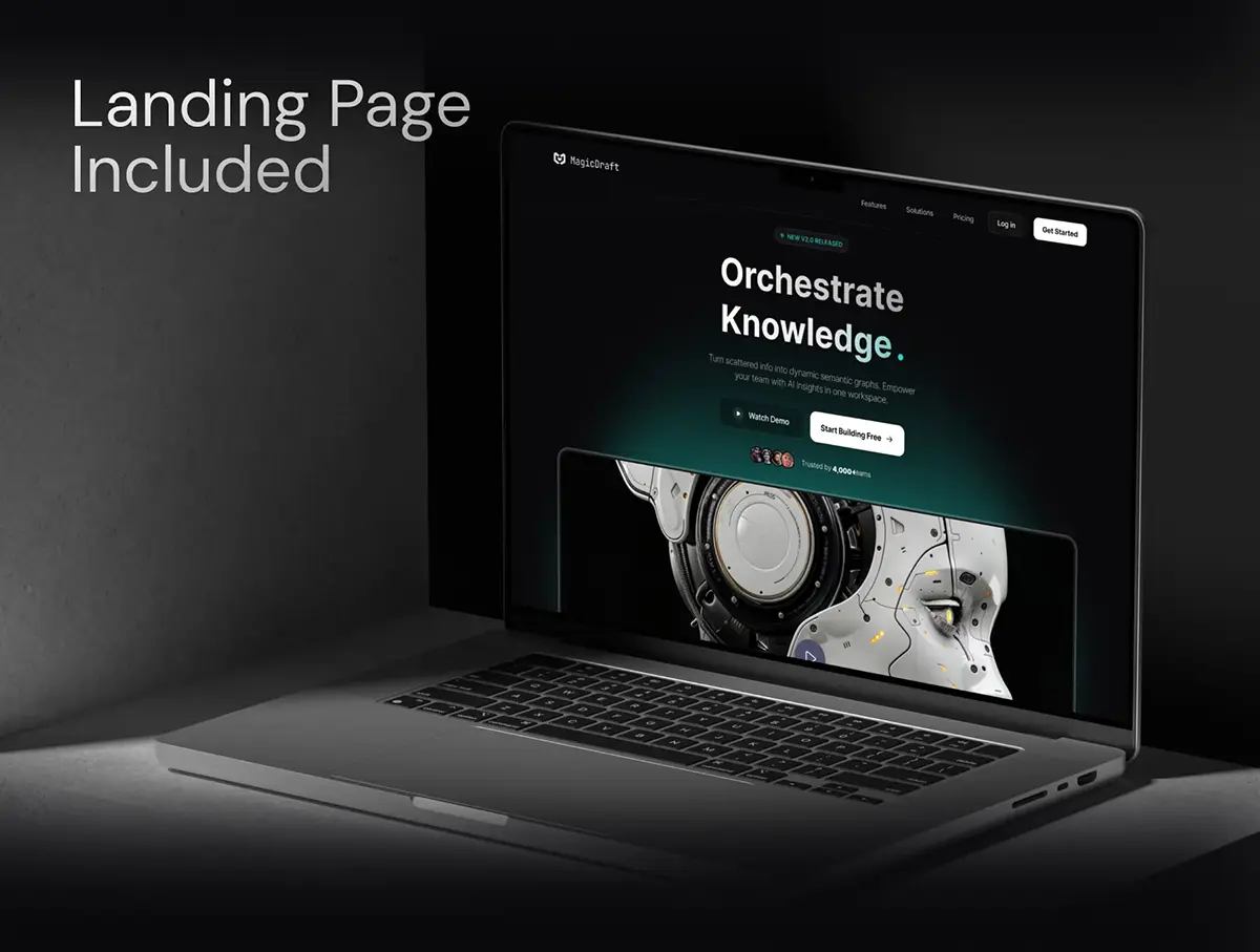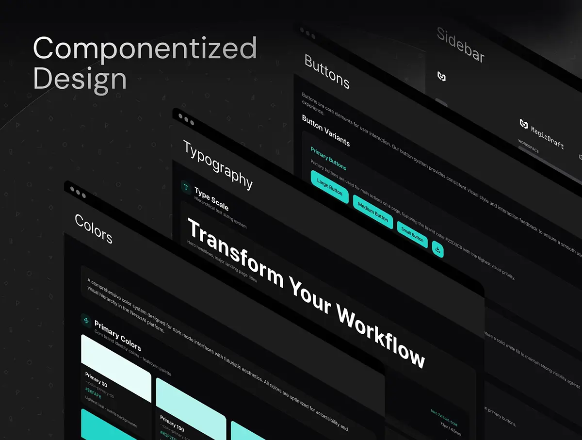 50屏SaaS后台系统AI工具数据管理可视化Figma网页端UI设计模板 MagicDraft – AI & SaaS Dashboard UI Kit (Dark Mode)