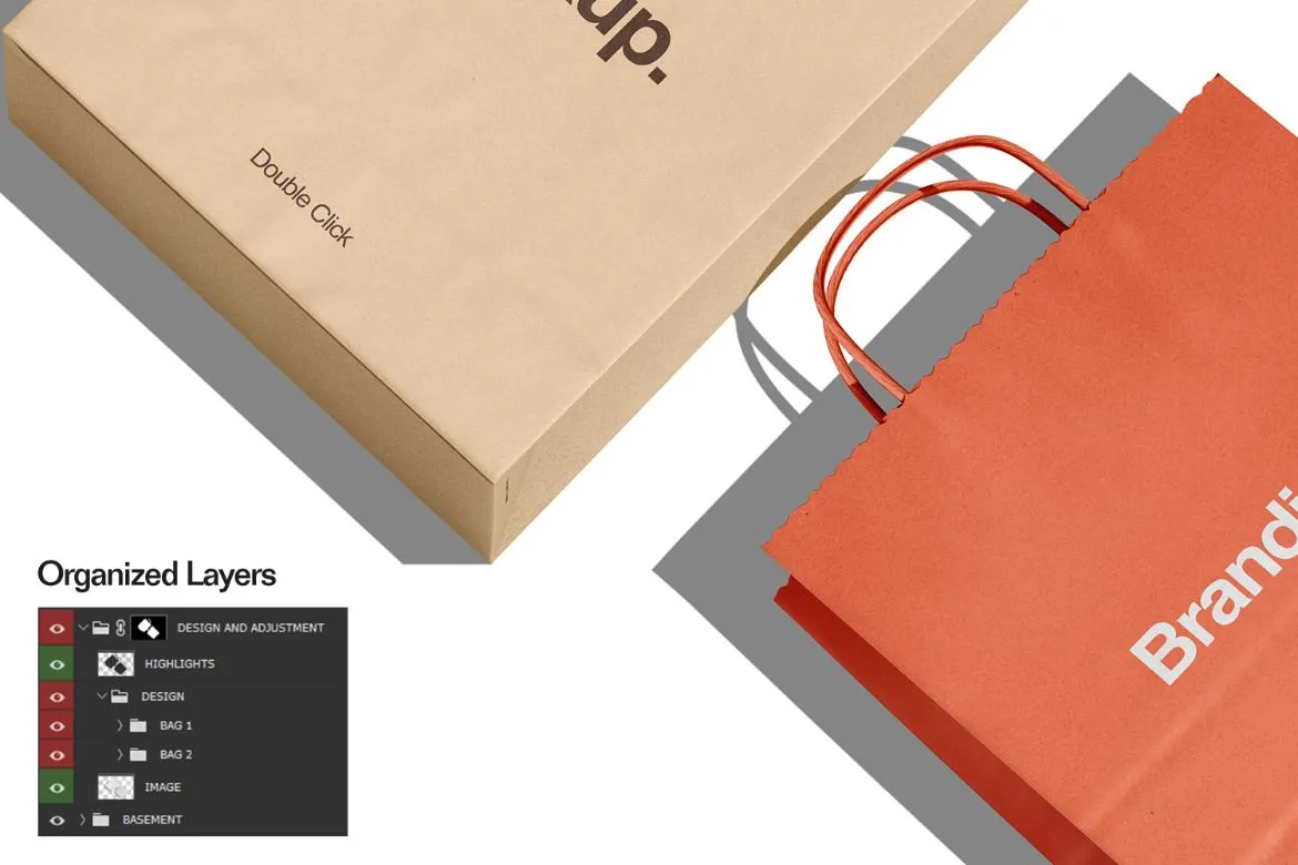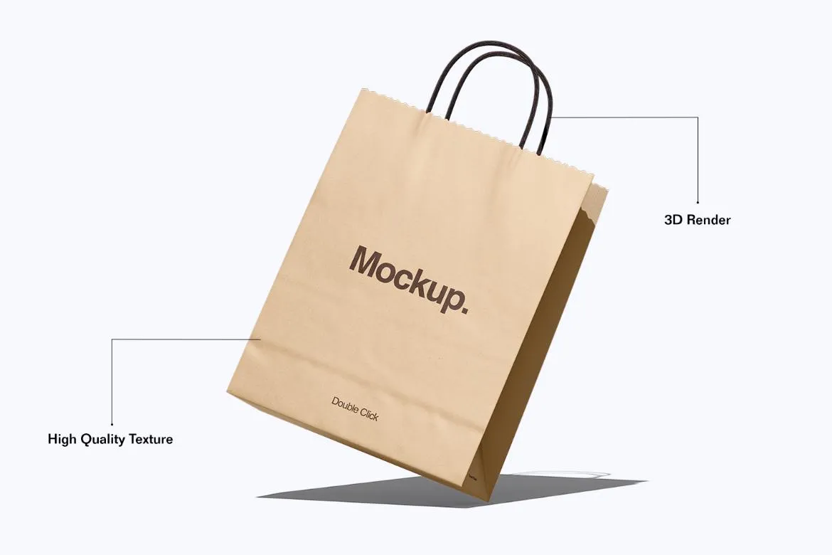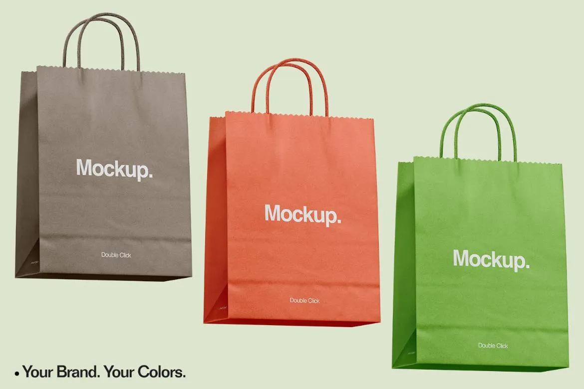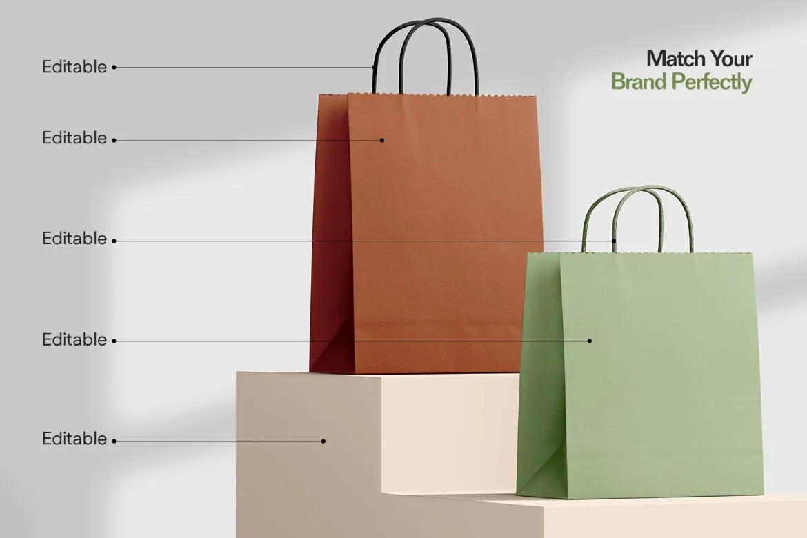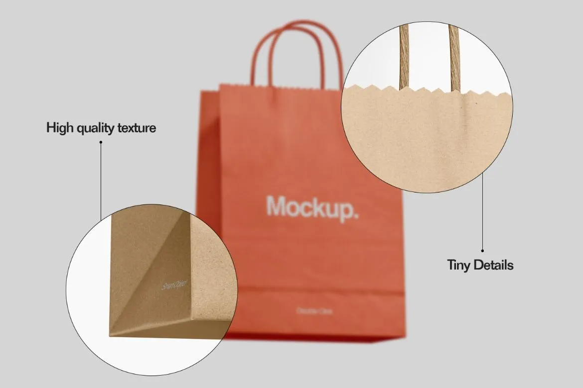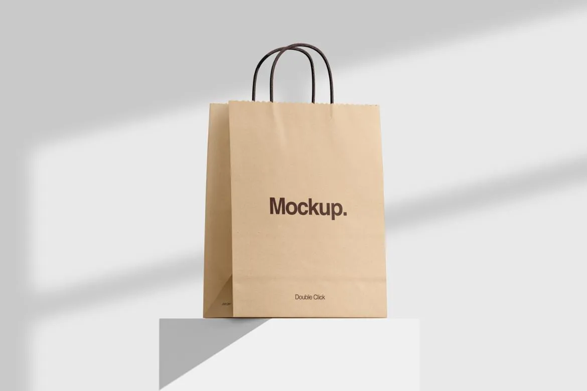 9款牛皮纸环保购物拎袋手提纸袋包装设计展示效果图ps样机素材 Kraft Paper Shopping Bag Mockup