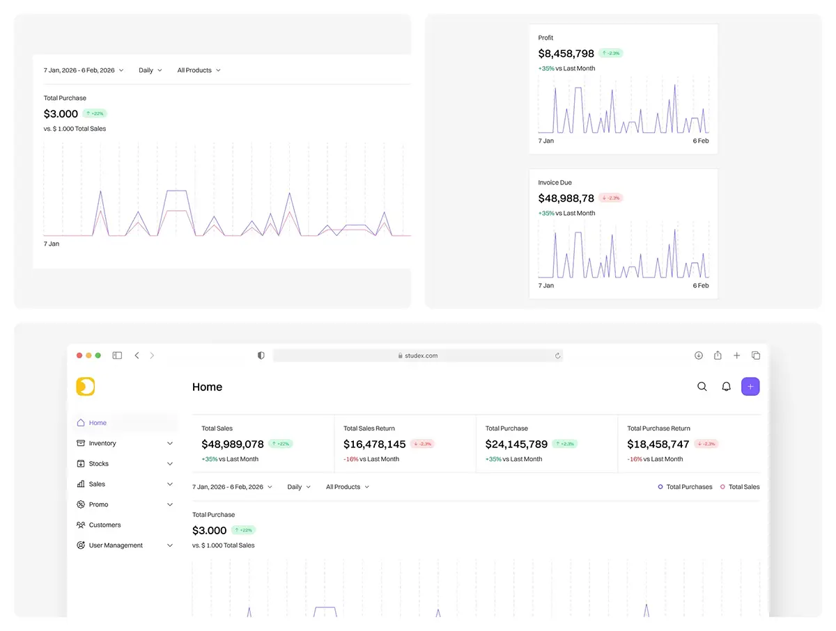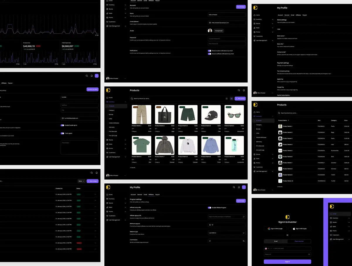 库存管理与客户关系管理与销售仪表盘明暗模式 Inventor Inventory Management UI Kit