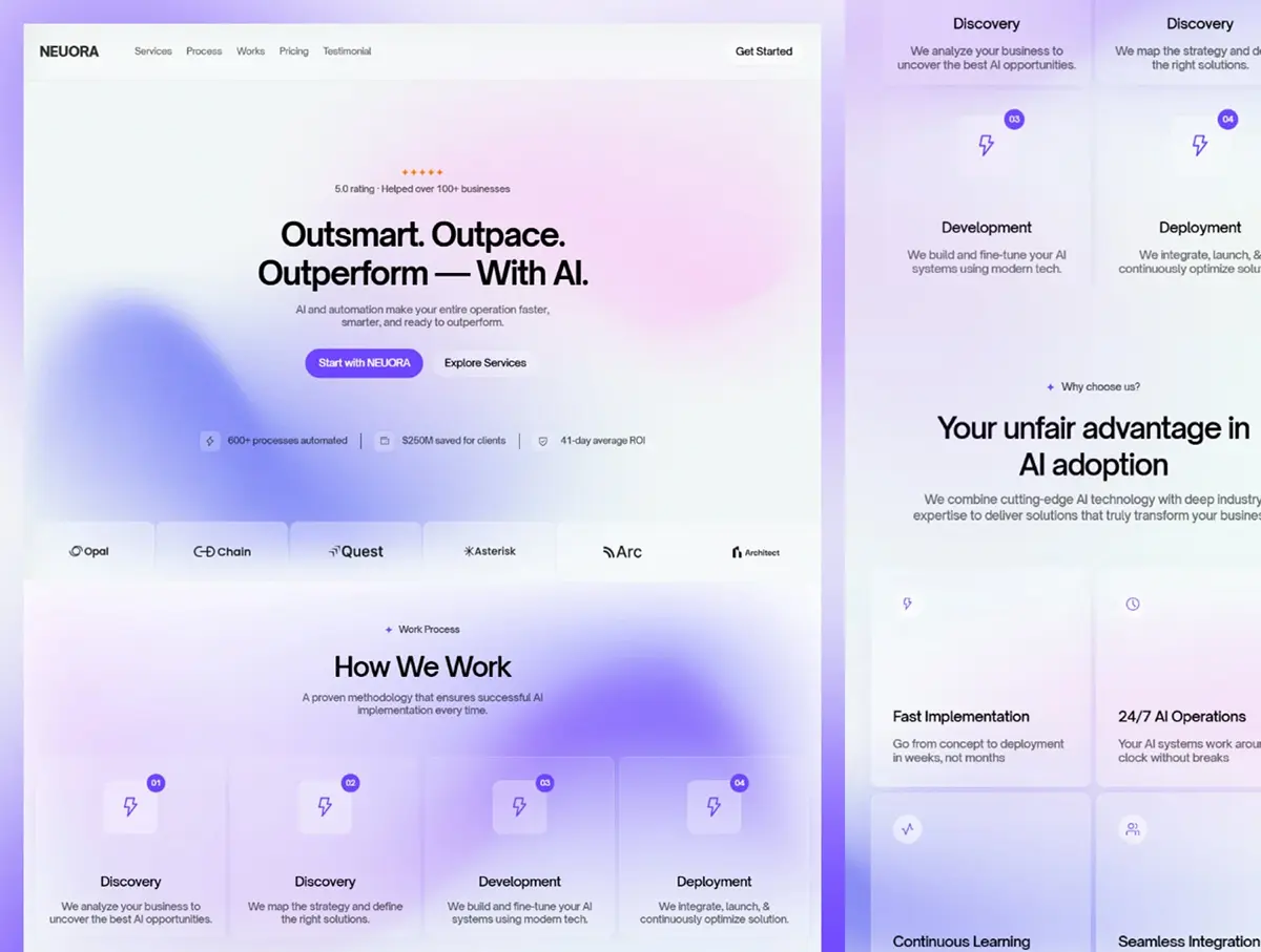 人工智能代理与自动化智能产品团队现代人工智能机构模板 NEUORA — AI Agency & Automation Template