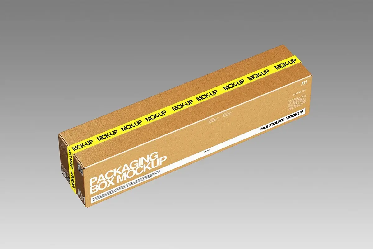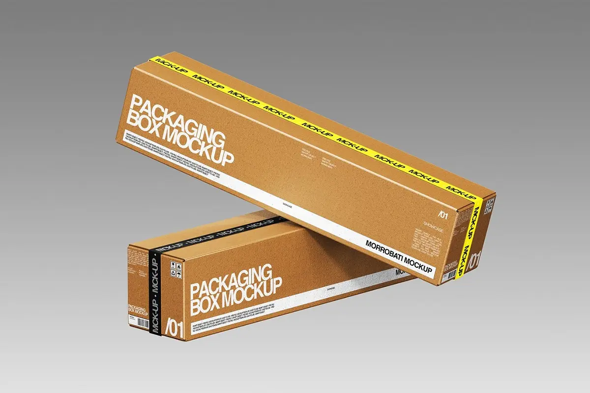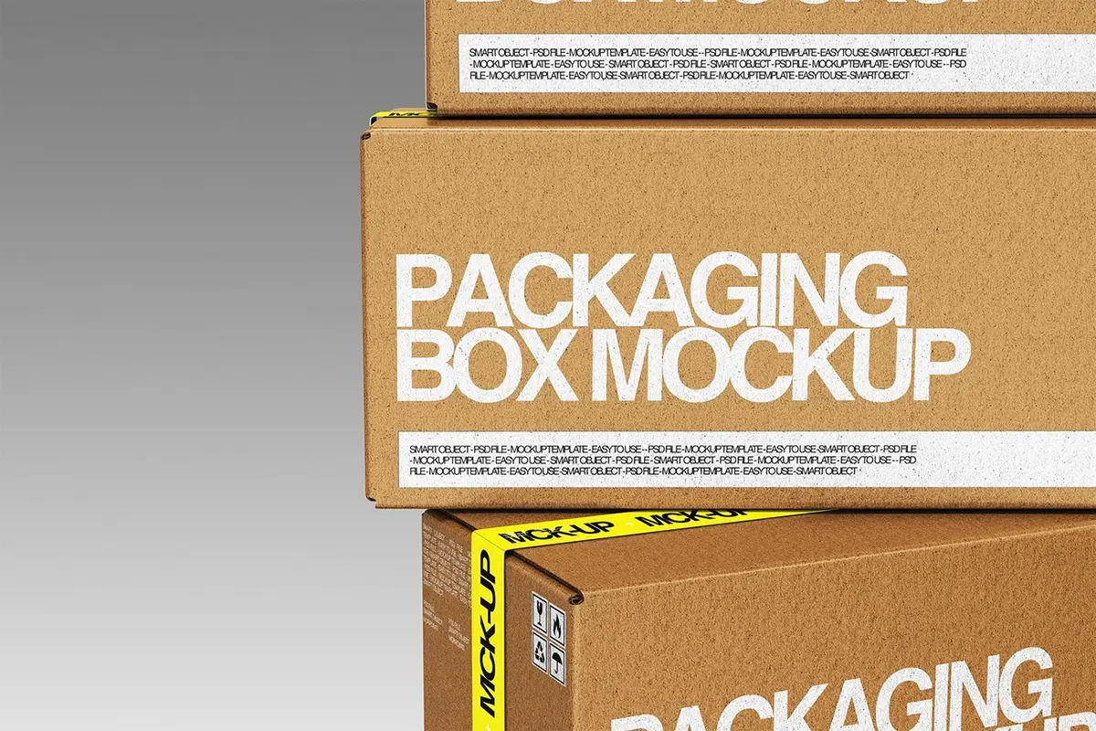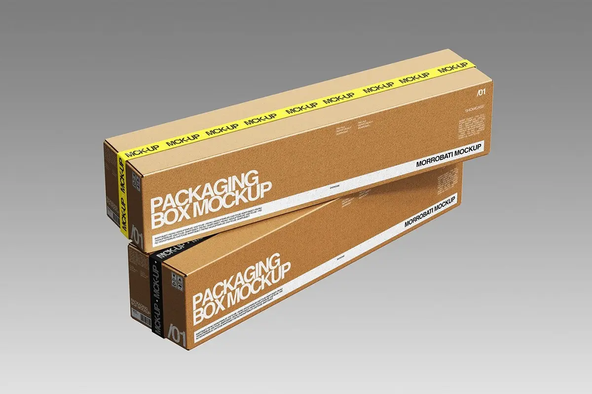4款长方形牛皮纸快递收纳打包盒瓦楞纸箱包装设计展示效果图ps样机 Cardboard Packaging Box Mockup