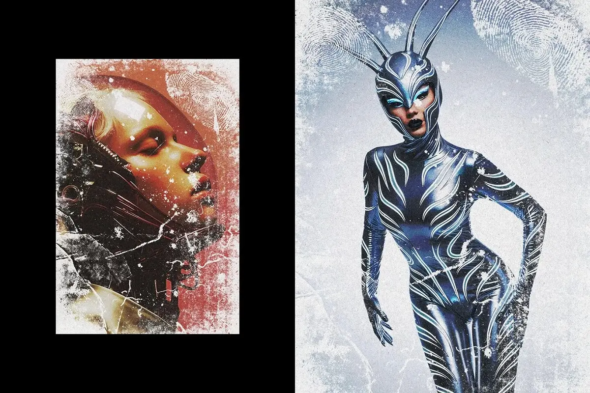 复古做旧粉尘指纹磨损划痕海报照片后期ps特效样机模板 Worn Grunge Photo Effect