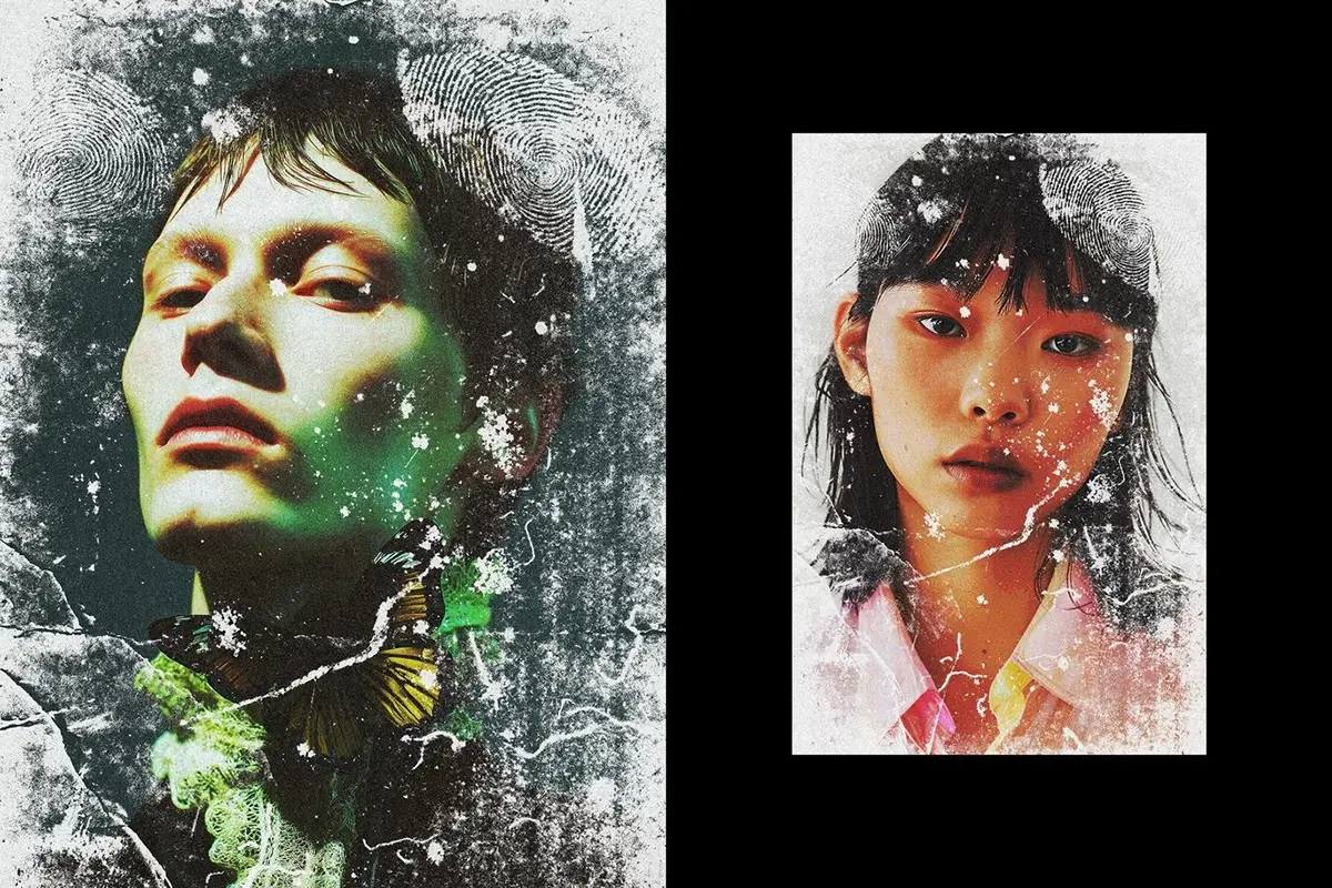 复古做旧粉尘指纹磨损划痕海报照片后期ps特效样机模板 Worn Grunge Photo Effect