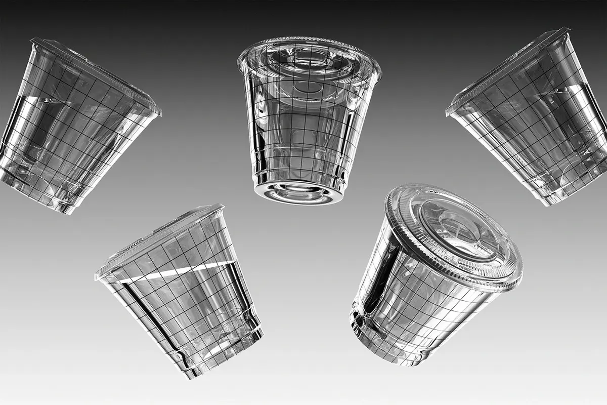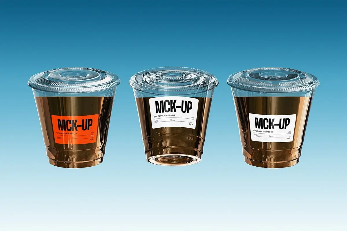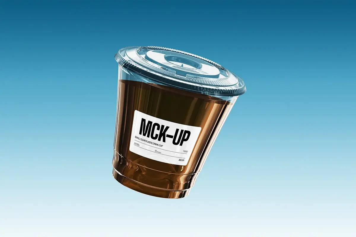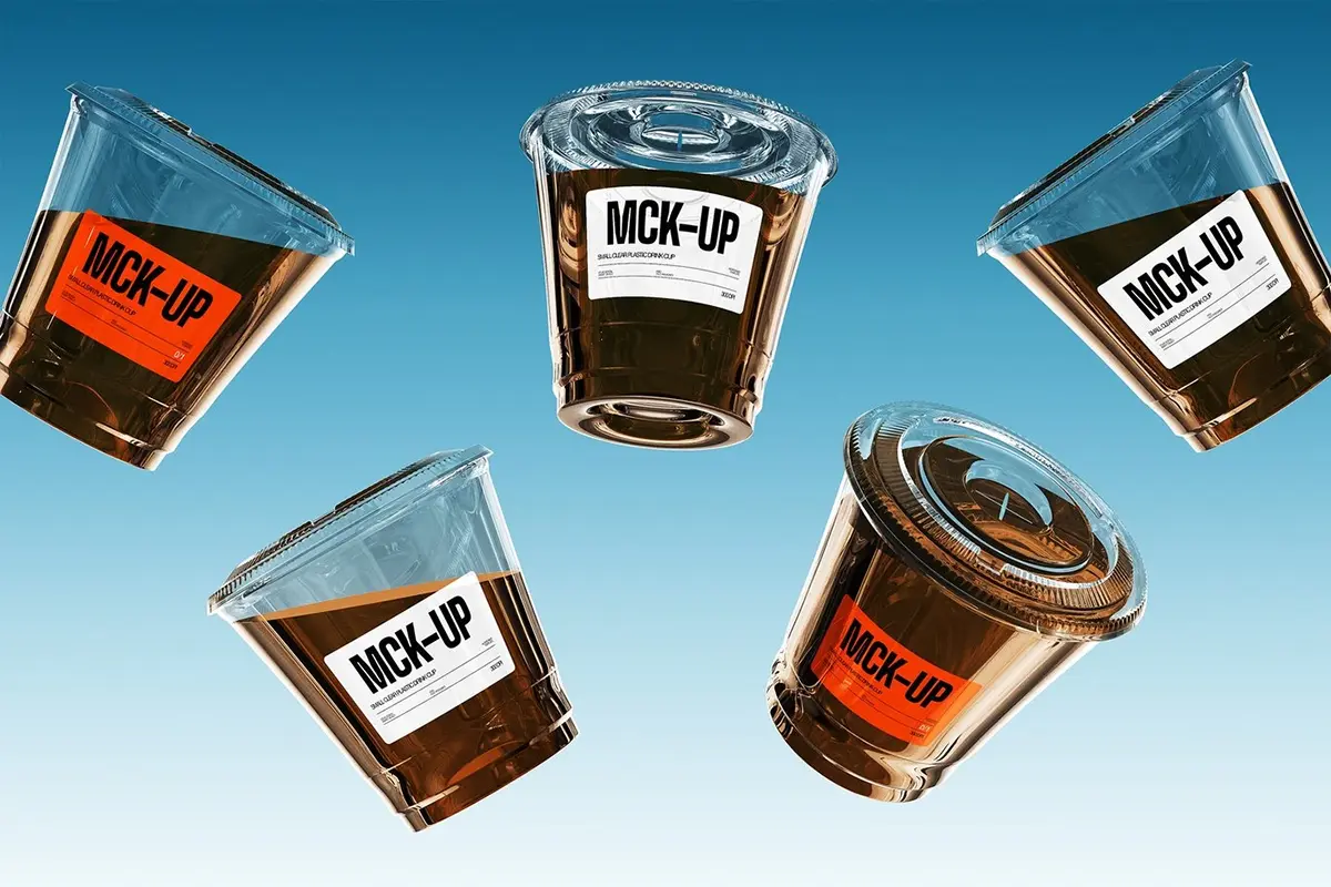 4款小型透明塑料咖啡果汁饮料杯身包装设计贴图ps样机 Small Clear Plastic Drink Cup Mockup