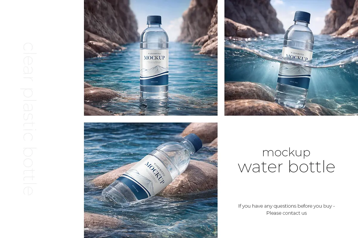 透明塑料水瓶模型套装 Clear Plastic Water Bottle Mockup Set