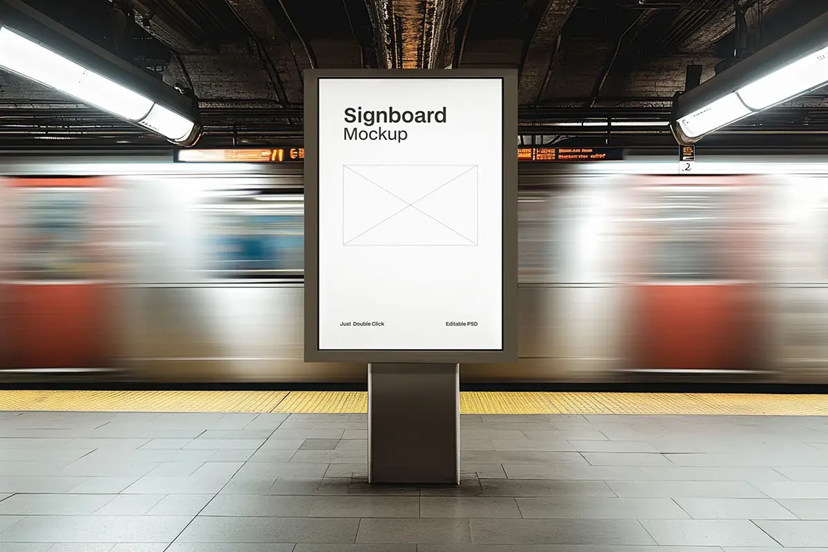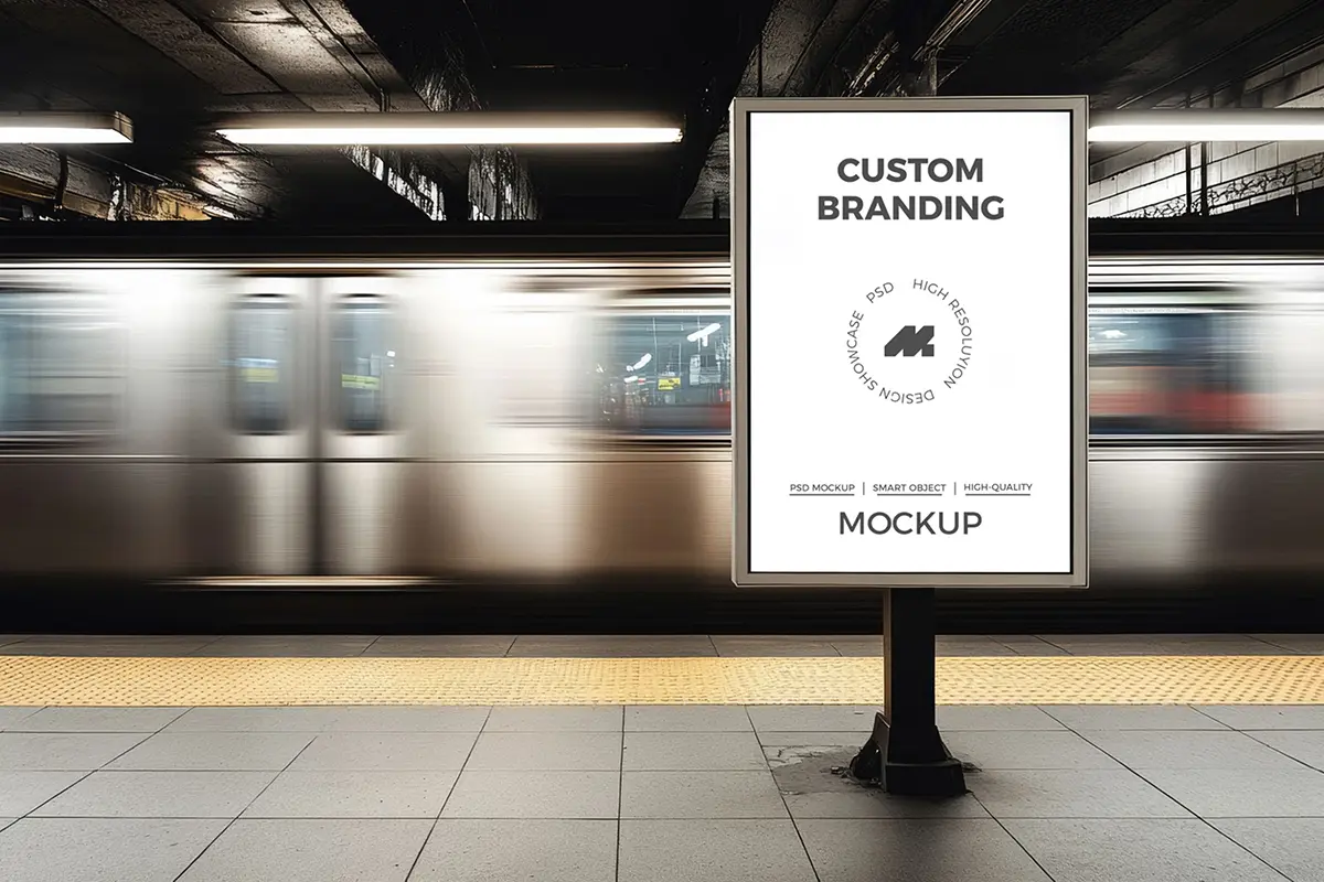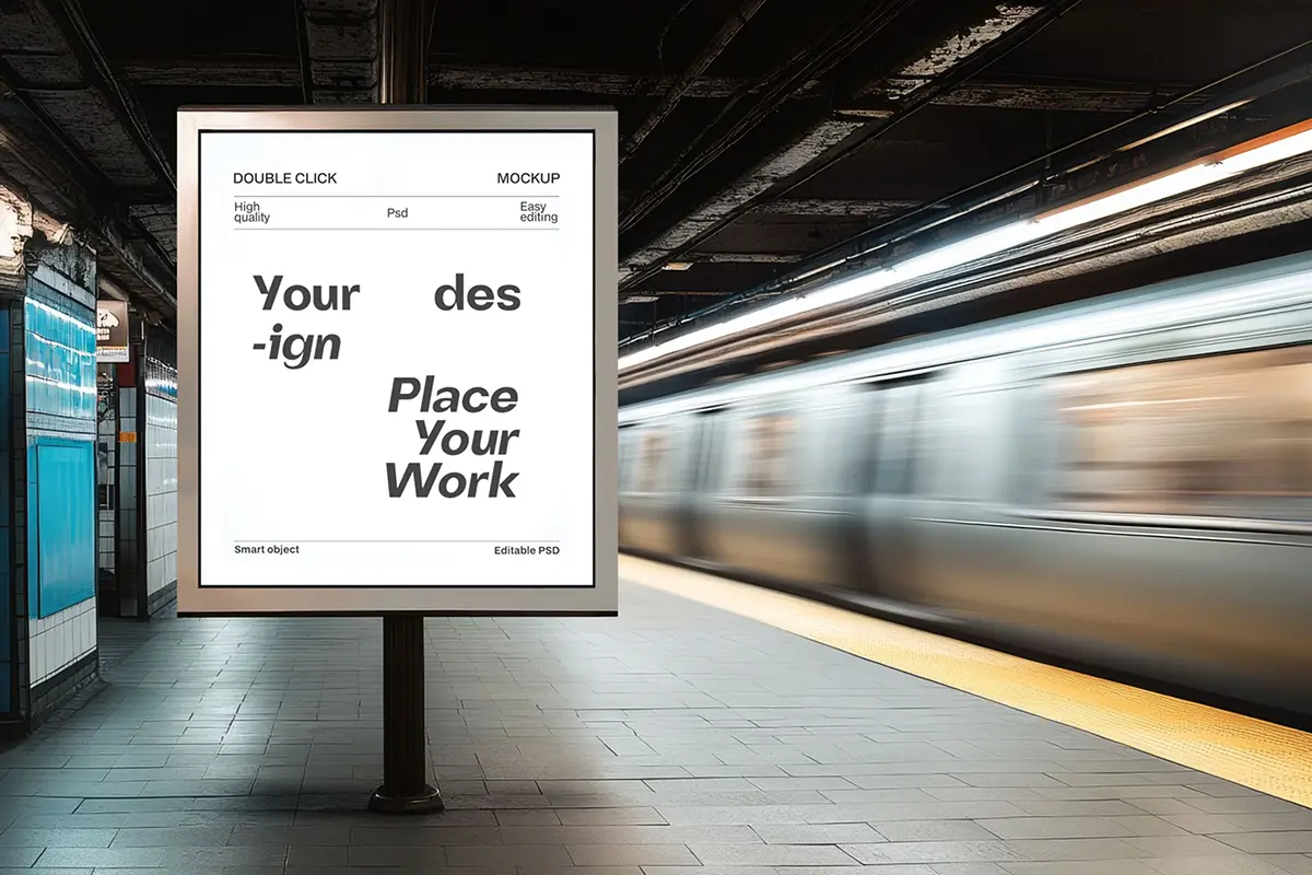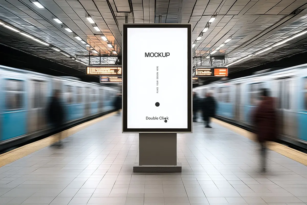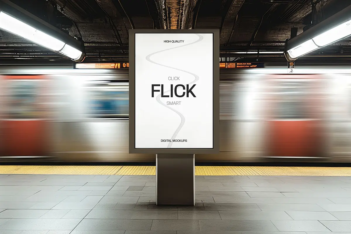 高度逼真的地铁站数字广告牌模型 Metro Station Mupi Billboard Mockup