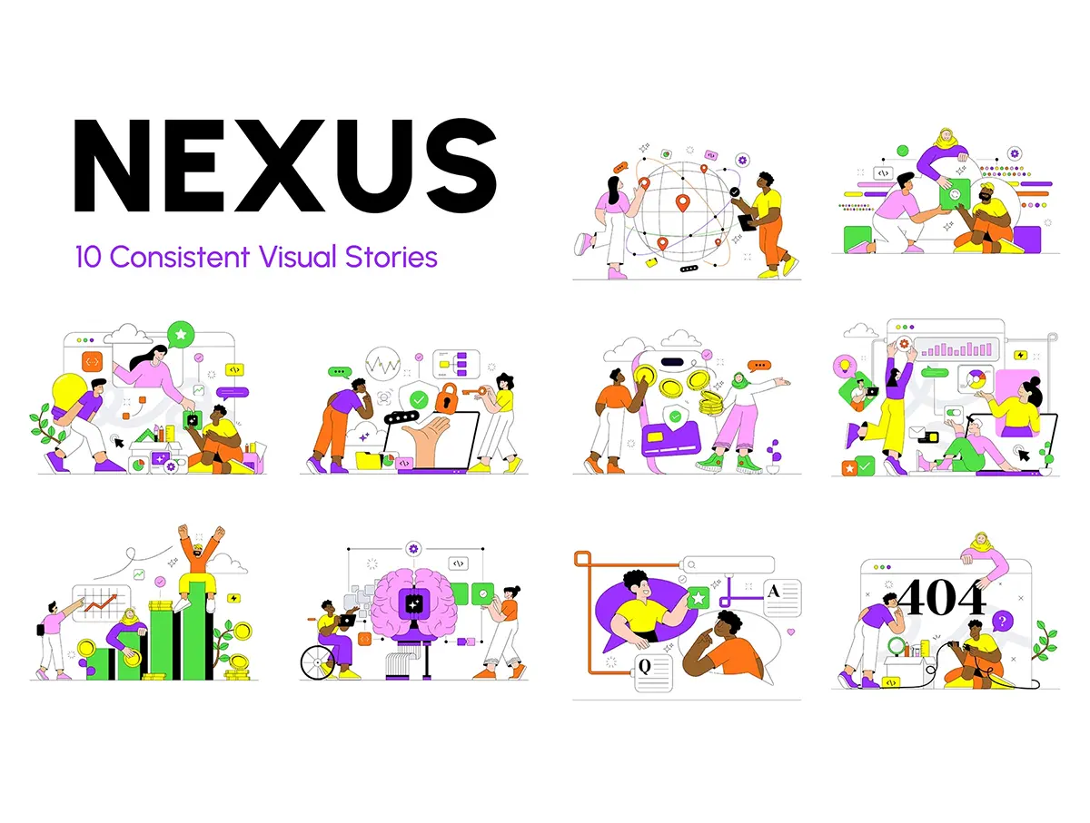 高端金融科技与 SaaS 图形系统插图插画 NEXUS – Premium Fintech & SaaS Illustration System