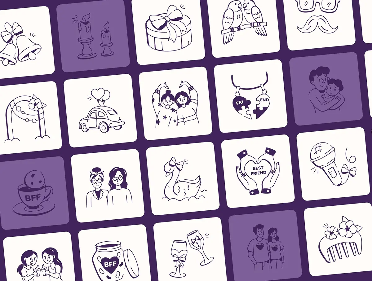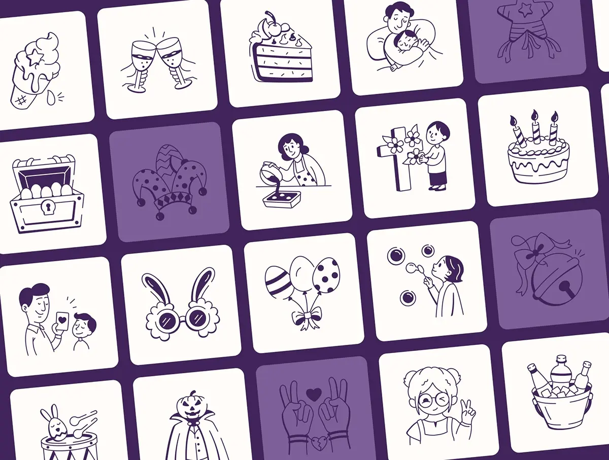 适用于各类活动的趣味图标卡通人物插图插画 Events and Celebration Doodles