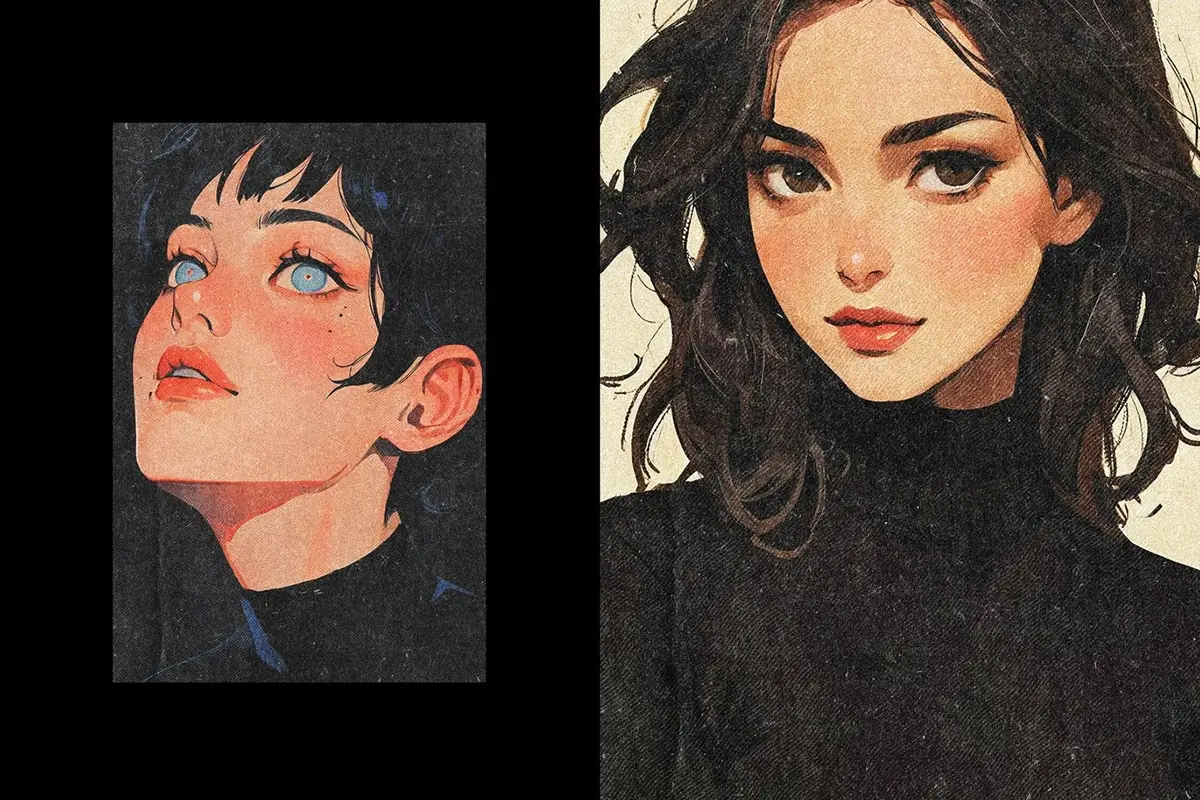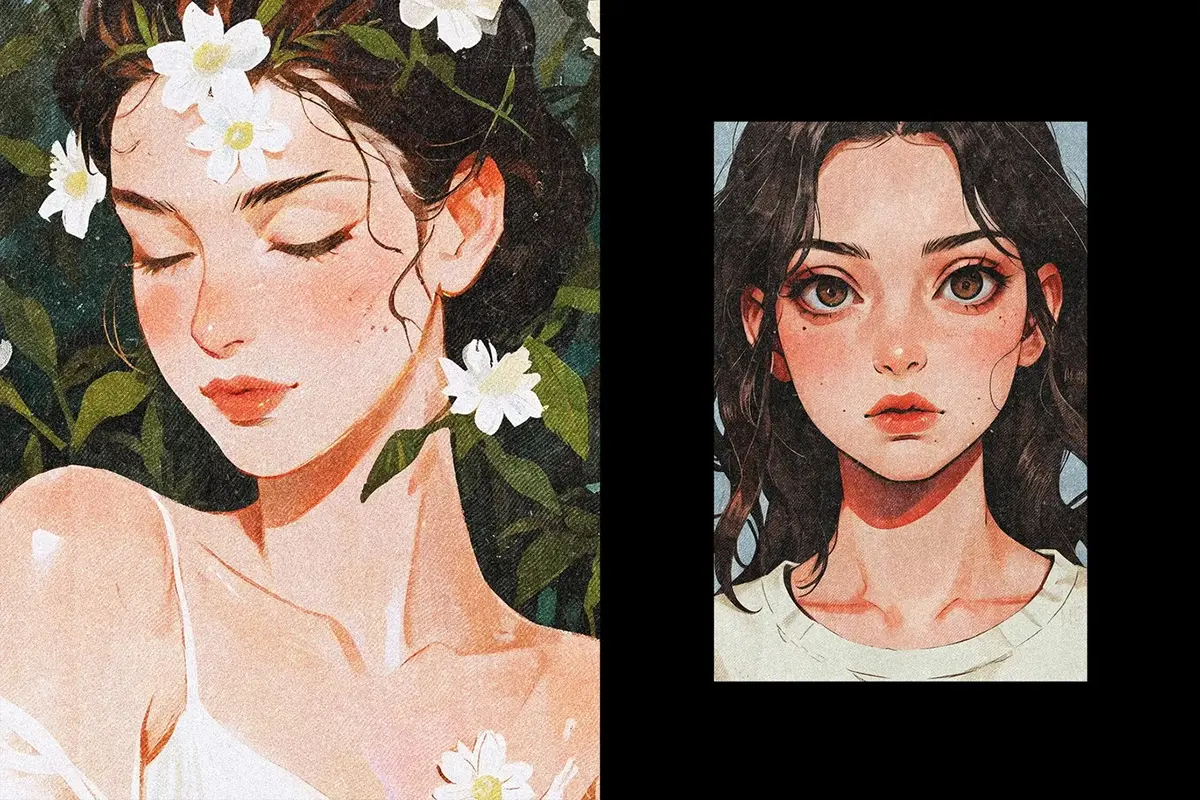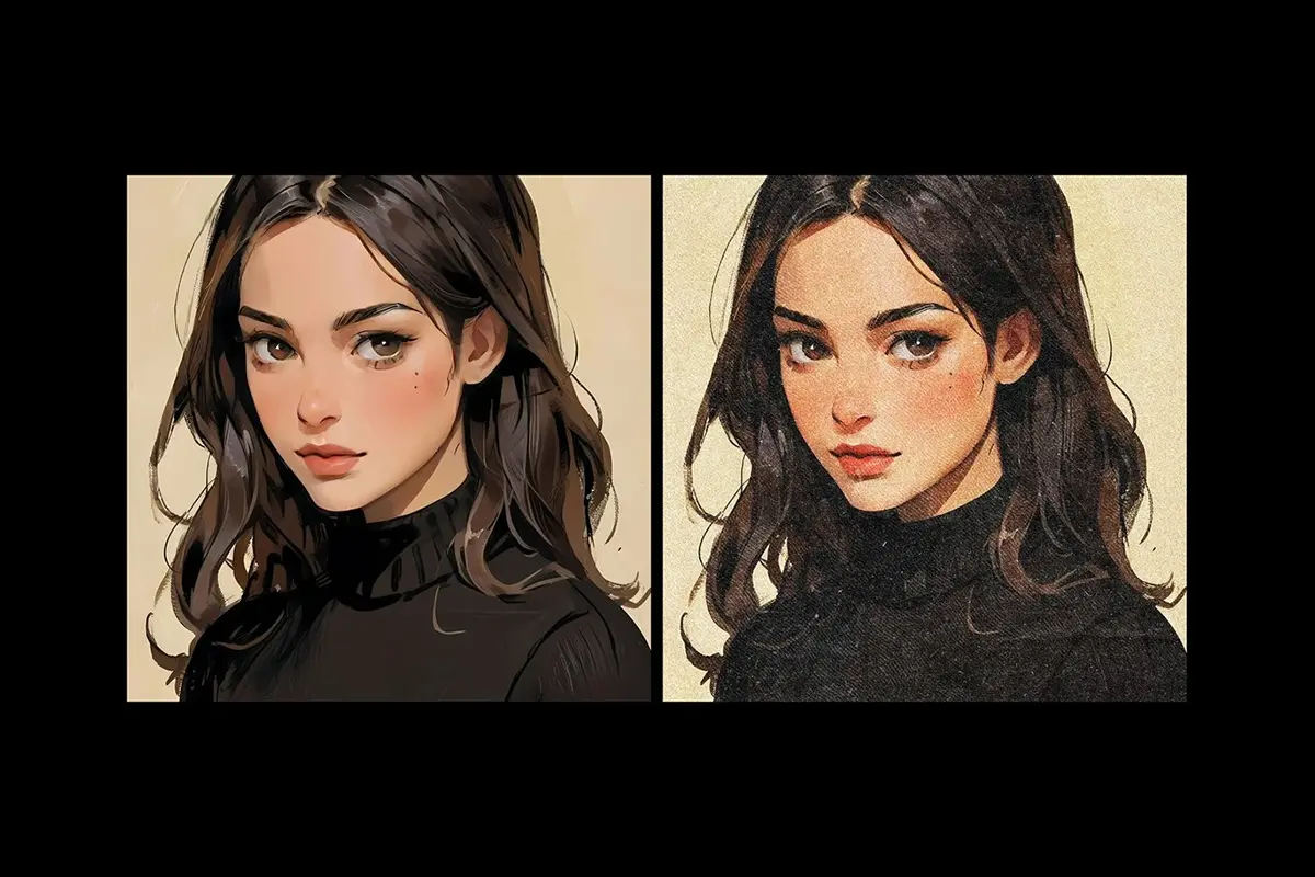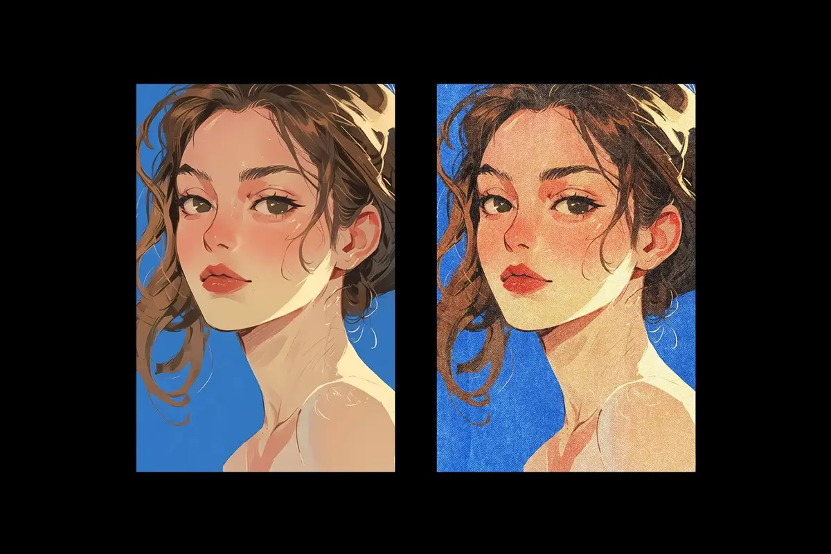 潮流复古做旧粗糙印刷半调噪点滤镜动漫卡通人物后期ps特效样机 Bright Print Halftone Effect